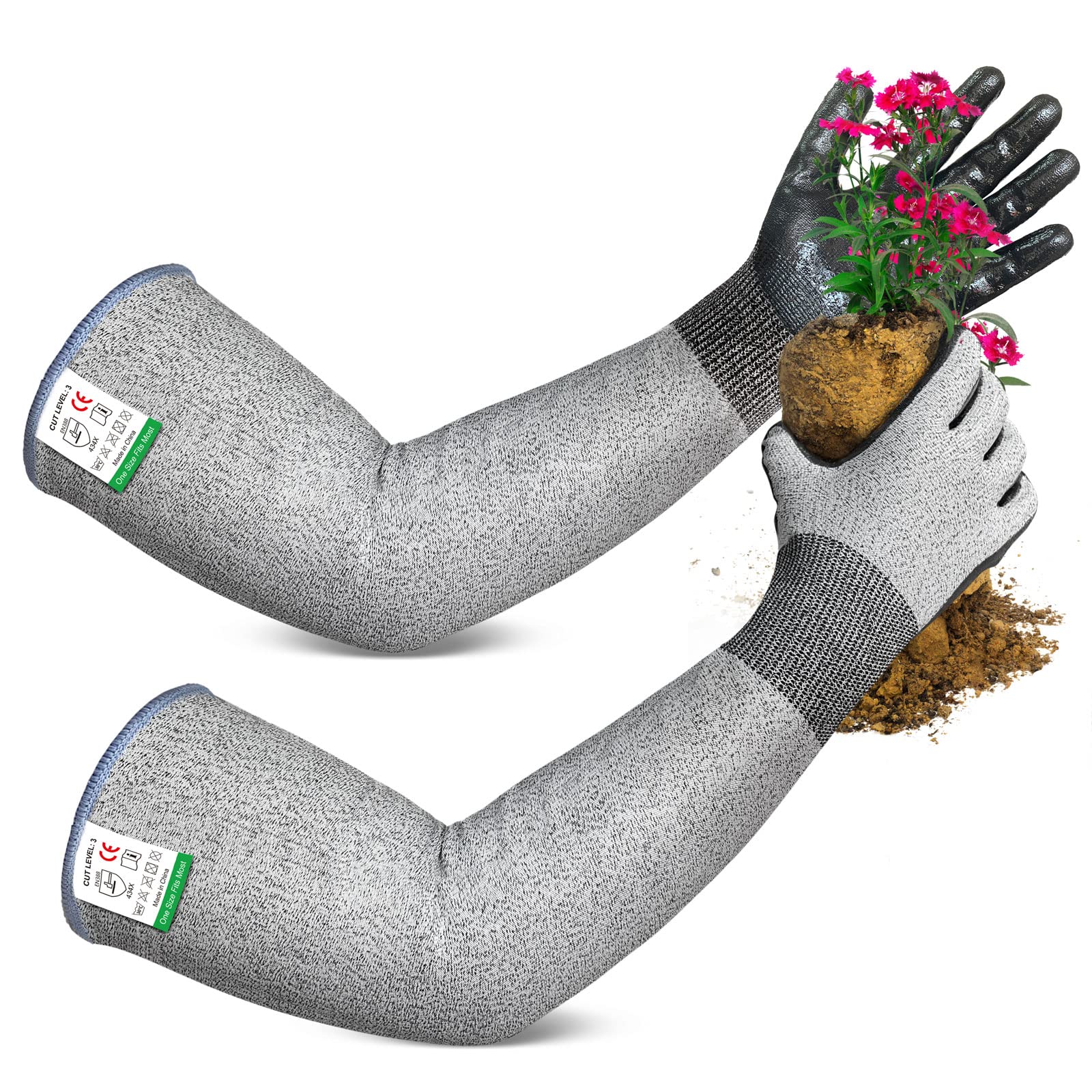 Evridwear – Guantes largos de jardinería resistentes a los cortes con palma antideslizante recubierta de nitrilo para jardinería y