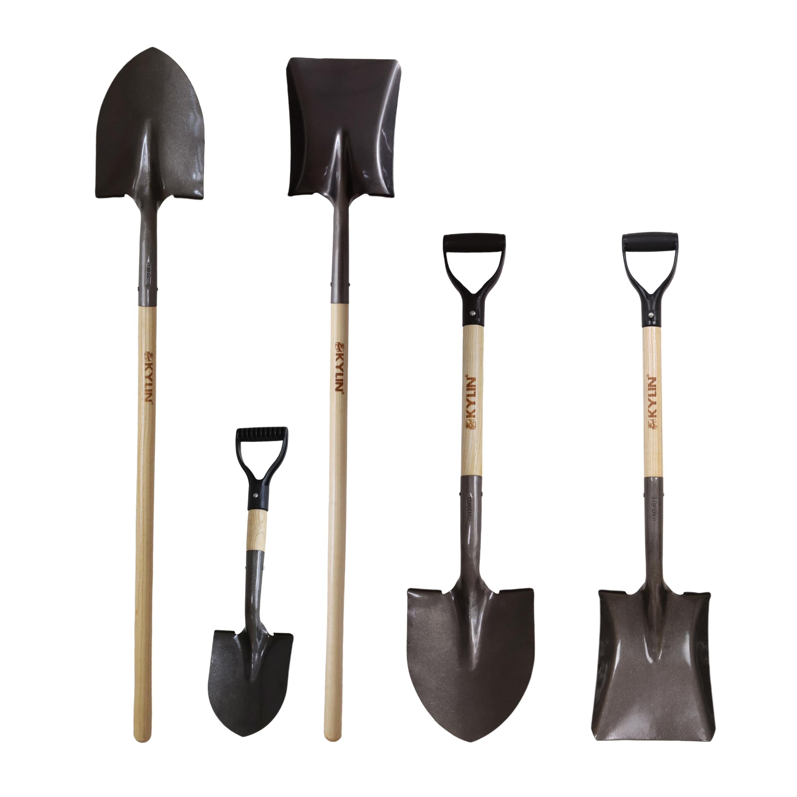 Kylin Juego de palas de excavación de jardín, pala cuadrada plana de punta ruidosa con mango en D de madera dura de norte largo, j