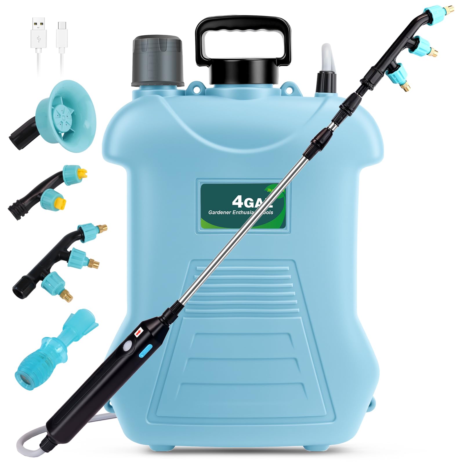 Pulverizador de jardín con batería de 4 galones, pulverizador de mochila recargable por USB, rociador de malezas con poste telescó