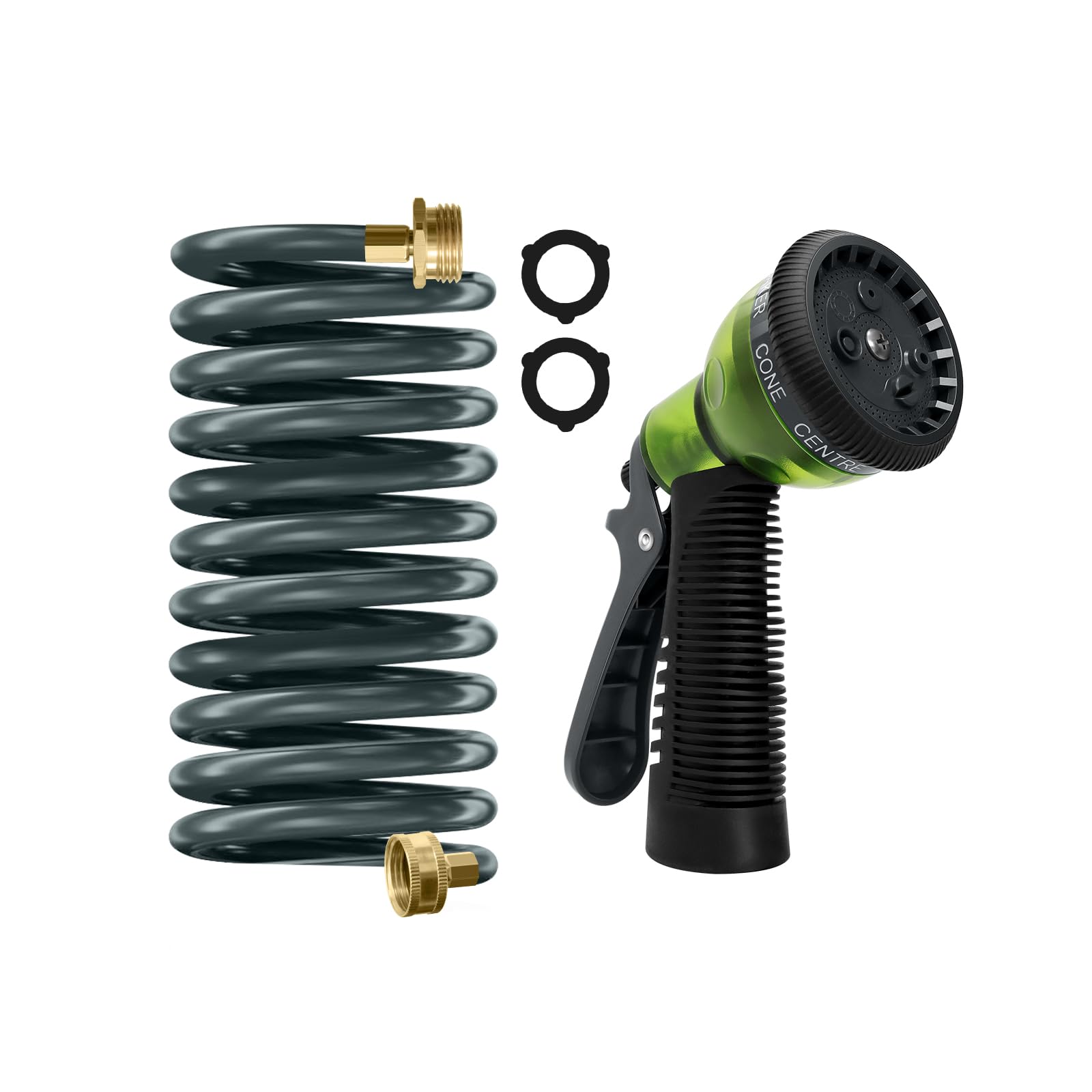 Manguera de jardín de bobina de EVA de 10 pies con conector de latón de 3/4 pulgadas, manguera de agua en espiral, ligera y sin to