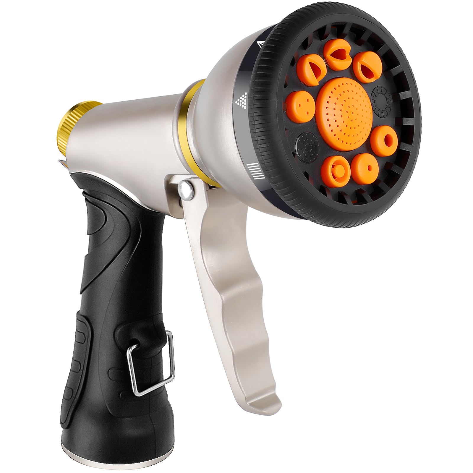Boquilla de manguera de jardín para exteriores, boquilla de manguera de metal de alta presión resistente sin fugas con 7 patrones