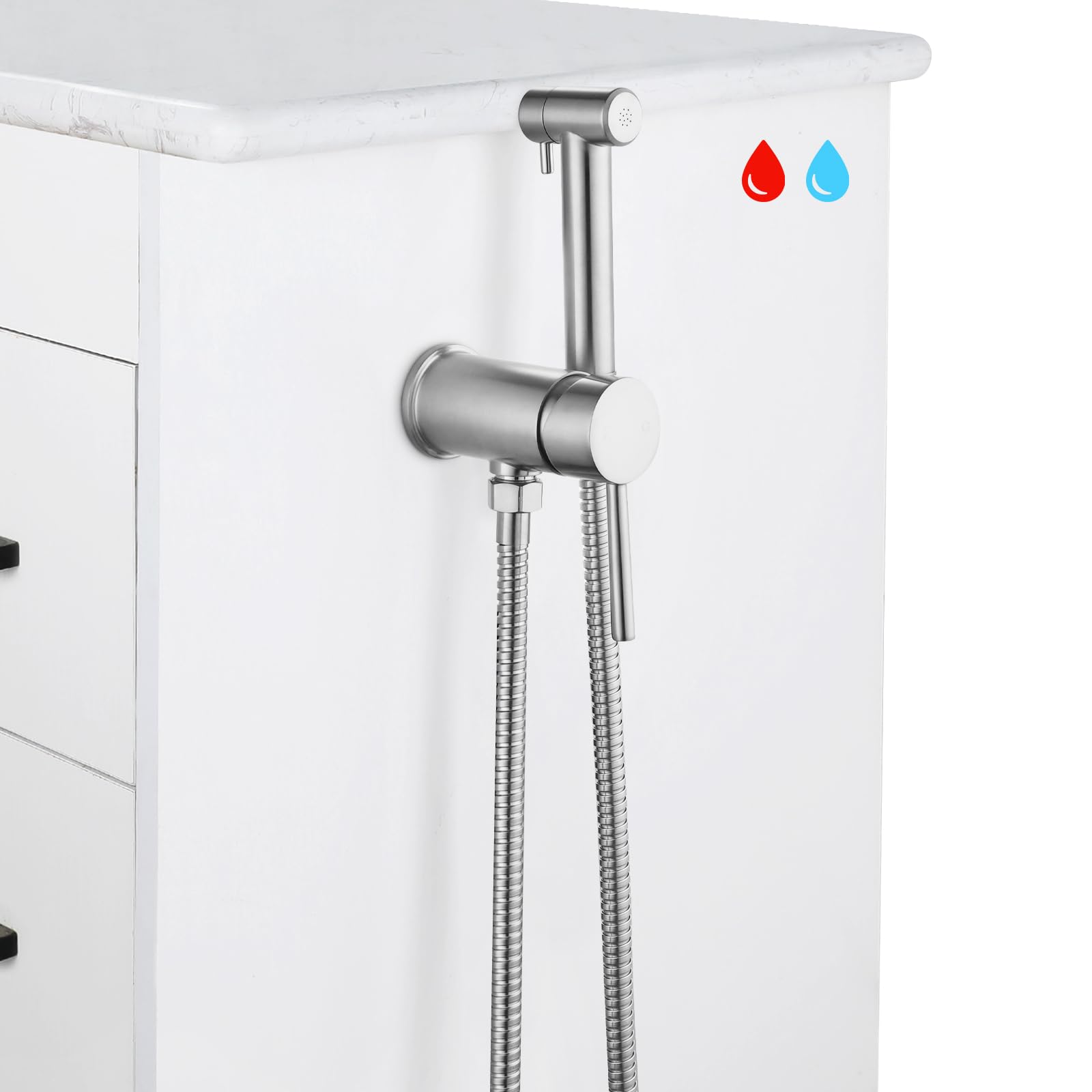 Bidé de mano de níquel cepillado rociador de agua caliente montado en el tocador de baño para inodoro, rociador de bidé caliente y