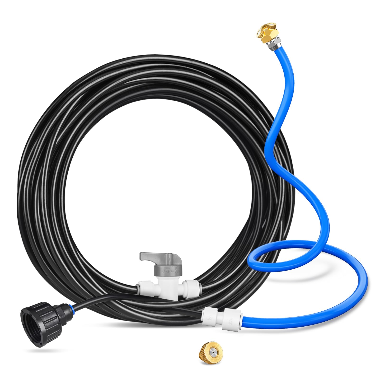 HIRALIY Misters de manguera para patio exterior, tubo de aluminio de 3.68 pies y tubo de poliuretano de 26.25 pies, sistema de neb