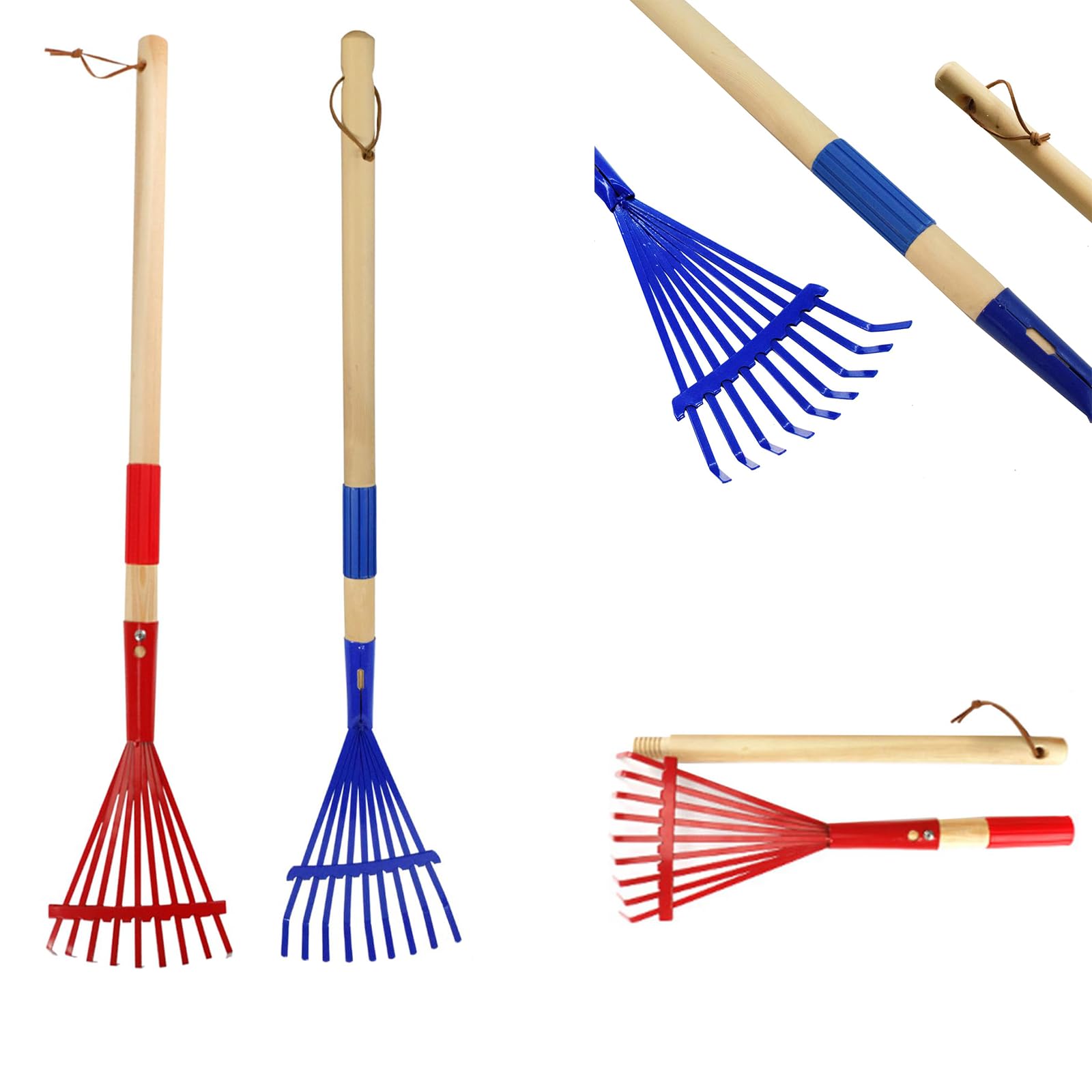 2 rastrillos para niños con mango de madera dura, rastrillo de césped de jardín, rastrillo ligero y lindo con cabezas para herrami