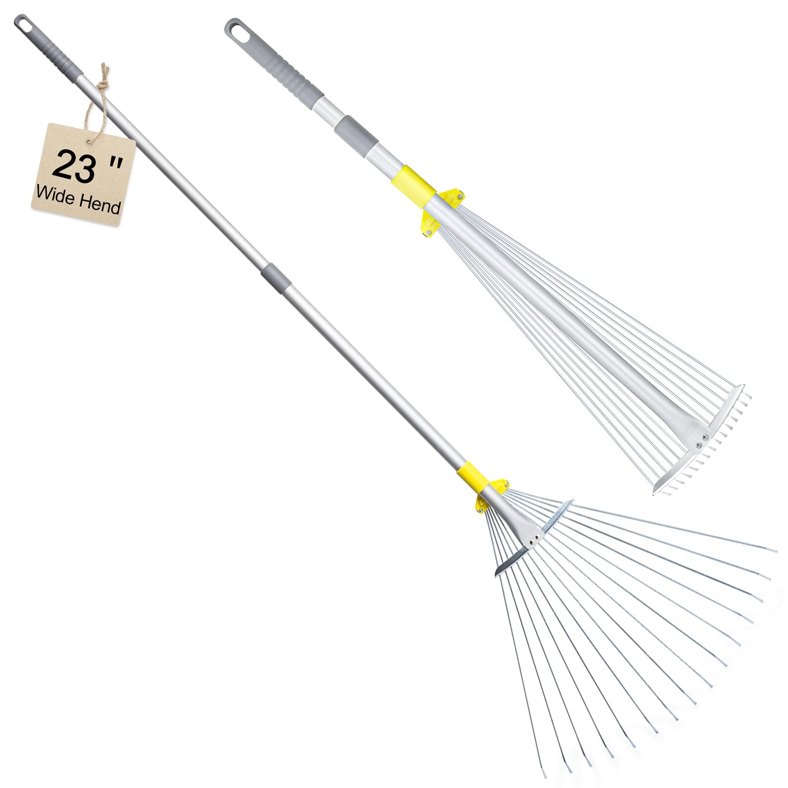JARDINEER Rastrillos ajustables para hojas, rastrillo de hojas de jardín más grande para césped y césped con cabeza expandible de