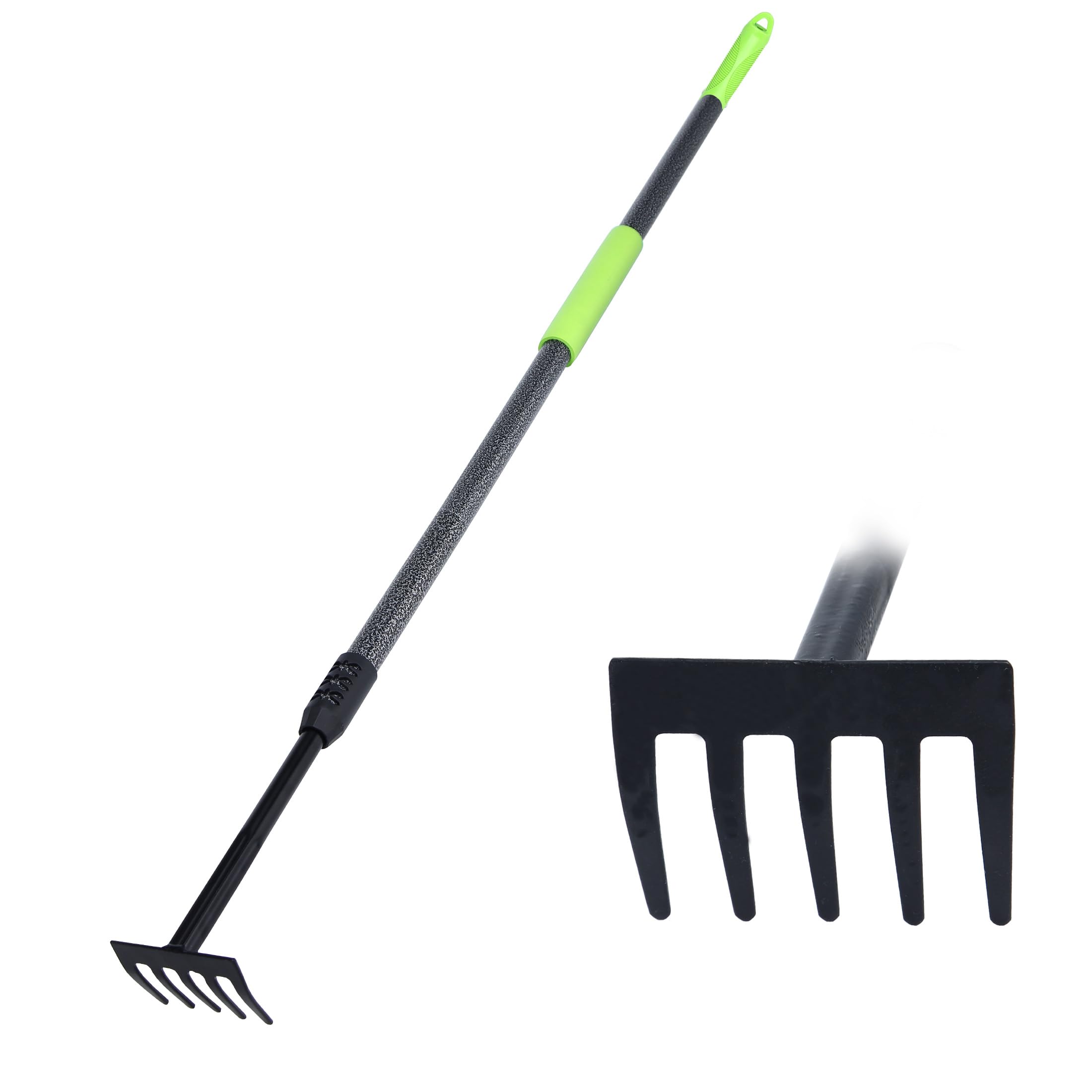 Rastrillo de mano, mango ajustable para jardín, pequeño rastrillo de jardín, cultivador de mano resistente con agarre de espuma su