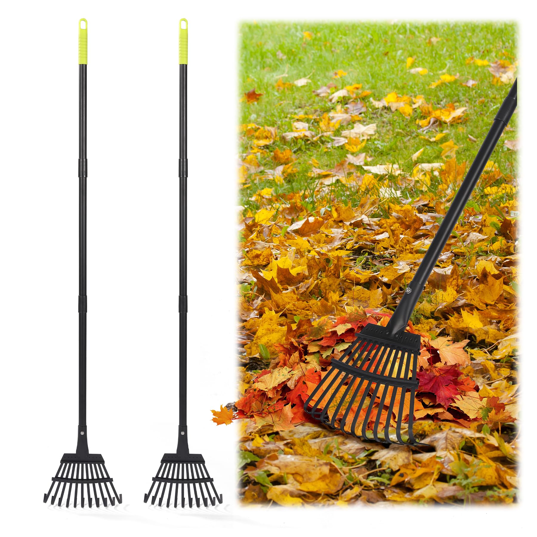 Rastrillo de 2 piezas para hojas, rastrillos pequeños ajustables de 37 a 82.5 pulgadas con 11 dientes, rastrillos de metal resiste