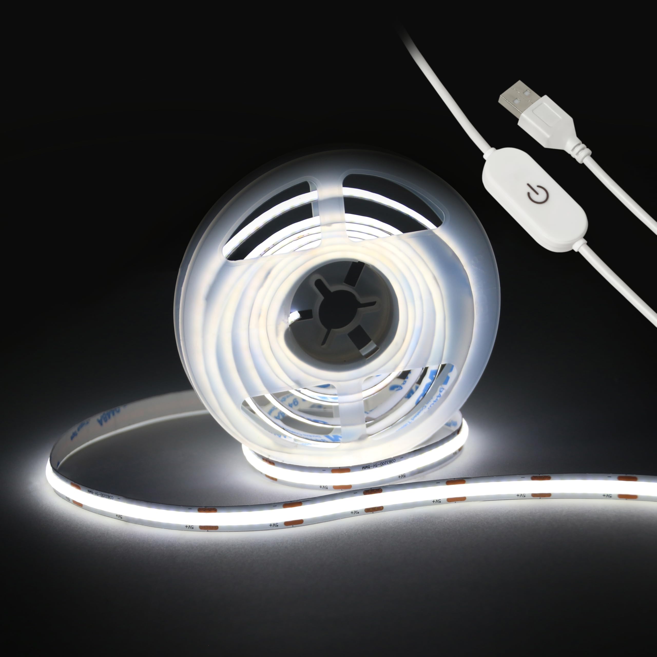 Tira de luces LED de 5 V USB 6.56 pies/6.6 ft 640 LED táctil regulable USB COB tira de luz LED 6000 K blanco 10 W flexible 5 V luc