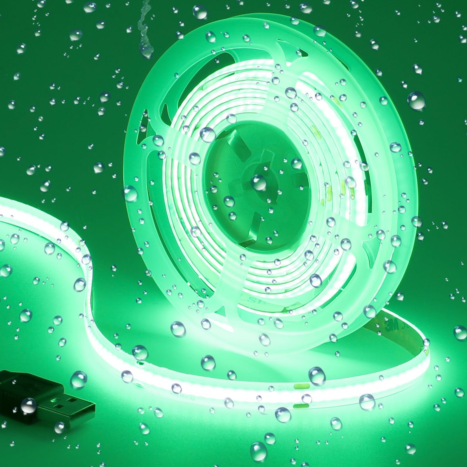 DC 5V USB COB verde LED tira de luz IP65 impermeable USB alimentado 6.6ft/2M 640LEDs alto brillo flexible luces de cinta LED