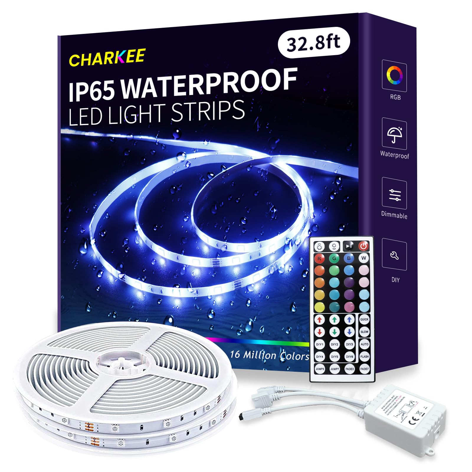 CHARKEE Luces LED para exteriores impermeables de 32.8 pies (16.4 pies x 2) – Tiras de luz RGB que cambian de color con control re