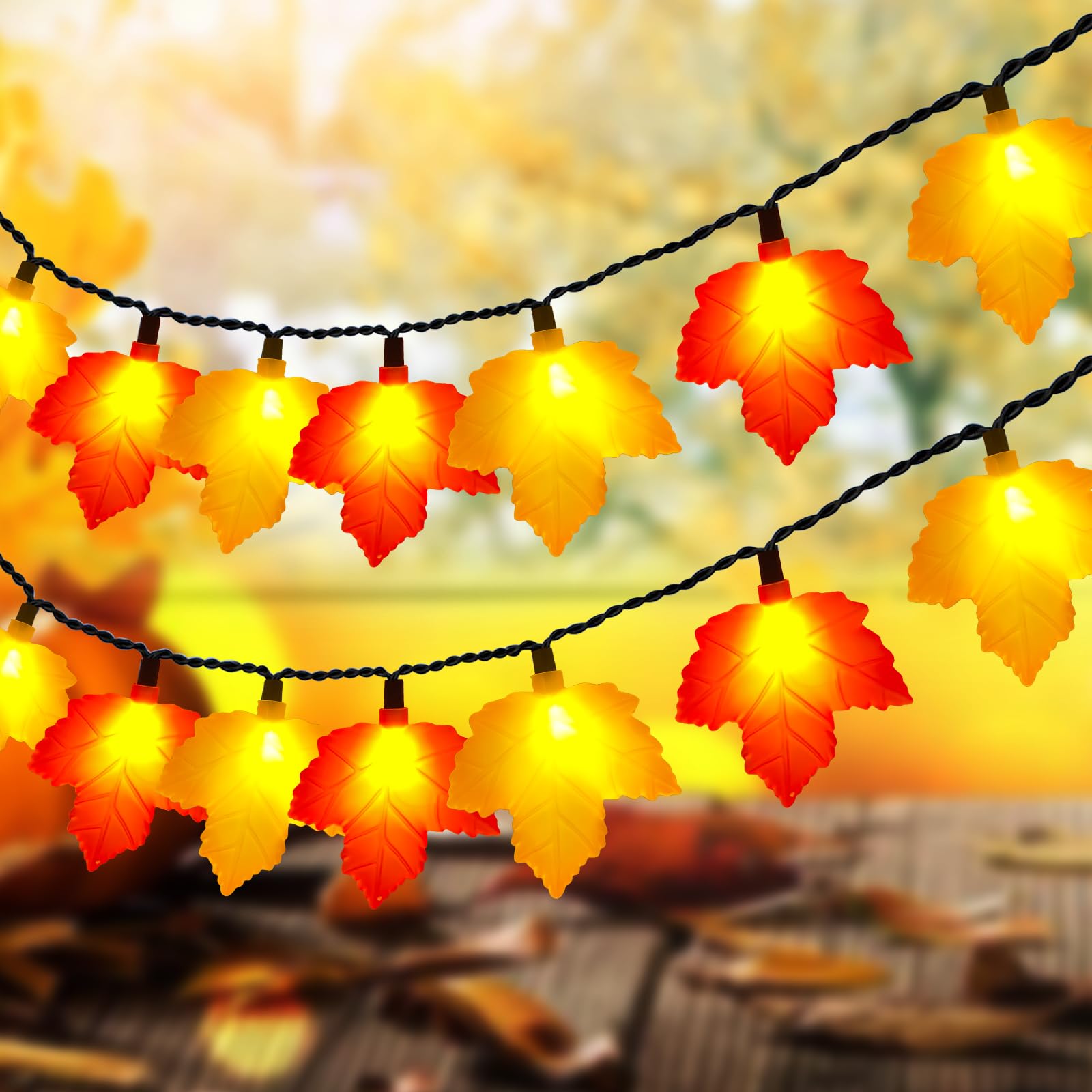 Abeja Guirnalda de luces LED de hoja de arce de 8.5 pies, guirnalda de luces de decoración de otoño con 10 bombillas LED, guirnald
