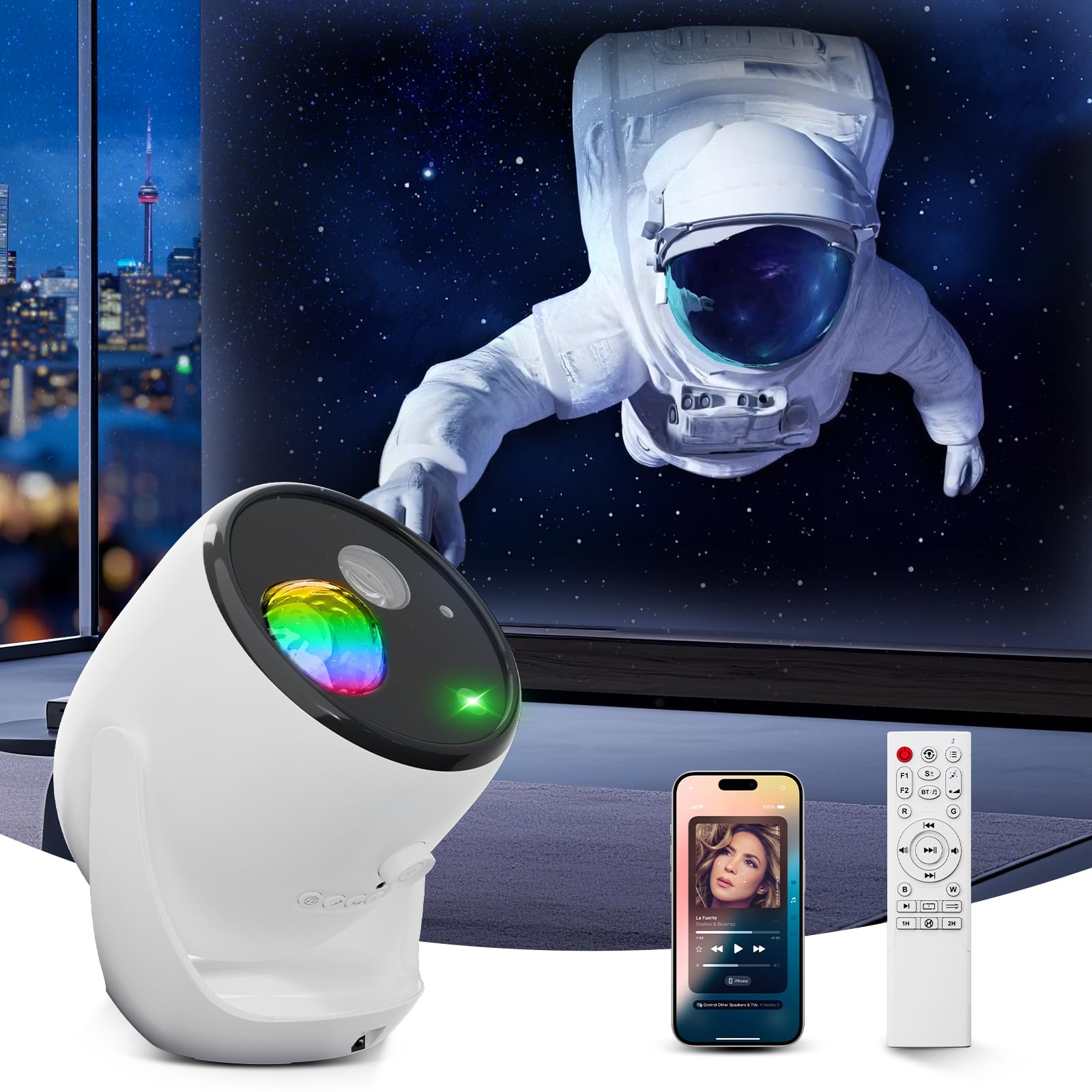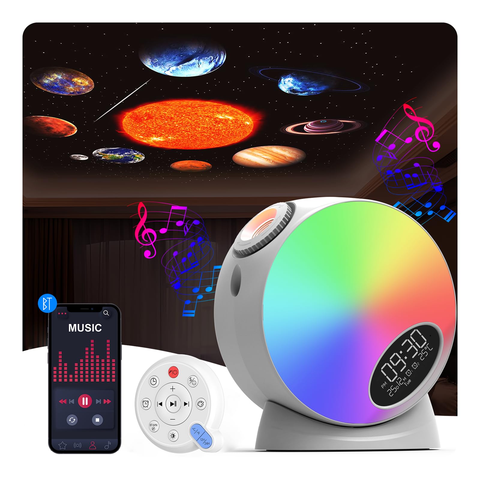 Rossetta Proyector de galaxia, proyector de estrellas, proyector 3D para dormitorio con 60 modos de escena, altavoz Bluetooth y co