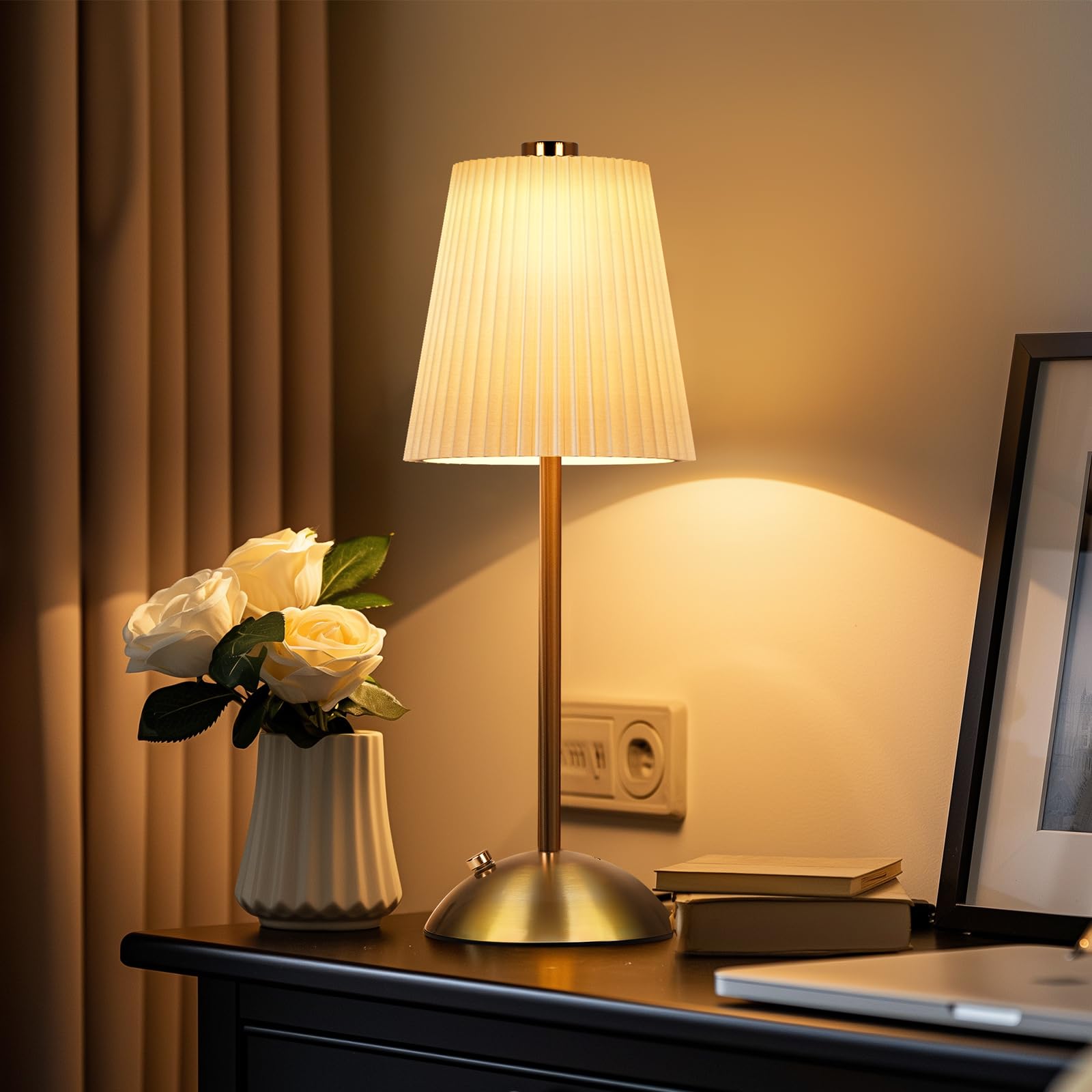 FRIDEKO HOME Lámparas de mesa inalámbricas, recargable, funciona con pilas, control táctil, 3 colores, temperatura, atenuación con