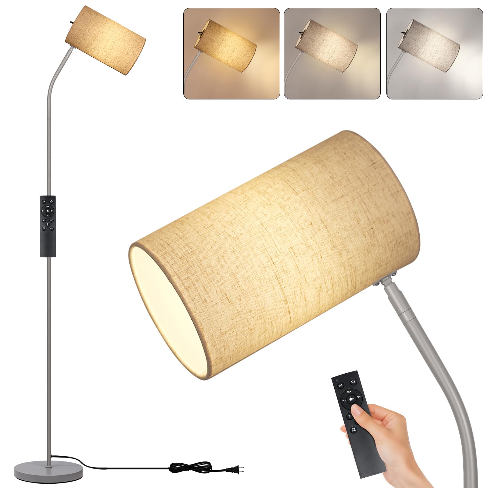 Lámpara de pie para sala de estar con bombilla de control remoto, luz de lectura moderna ajustable, lámparas de pie para dormitori