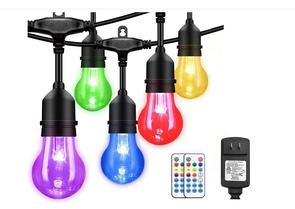 Guirnalda de luces inteligentes para exteriores, impermeable, 40 pies, con 15 bombillas LED Edison RGB regulables, alimentadas por