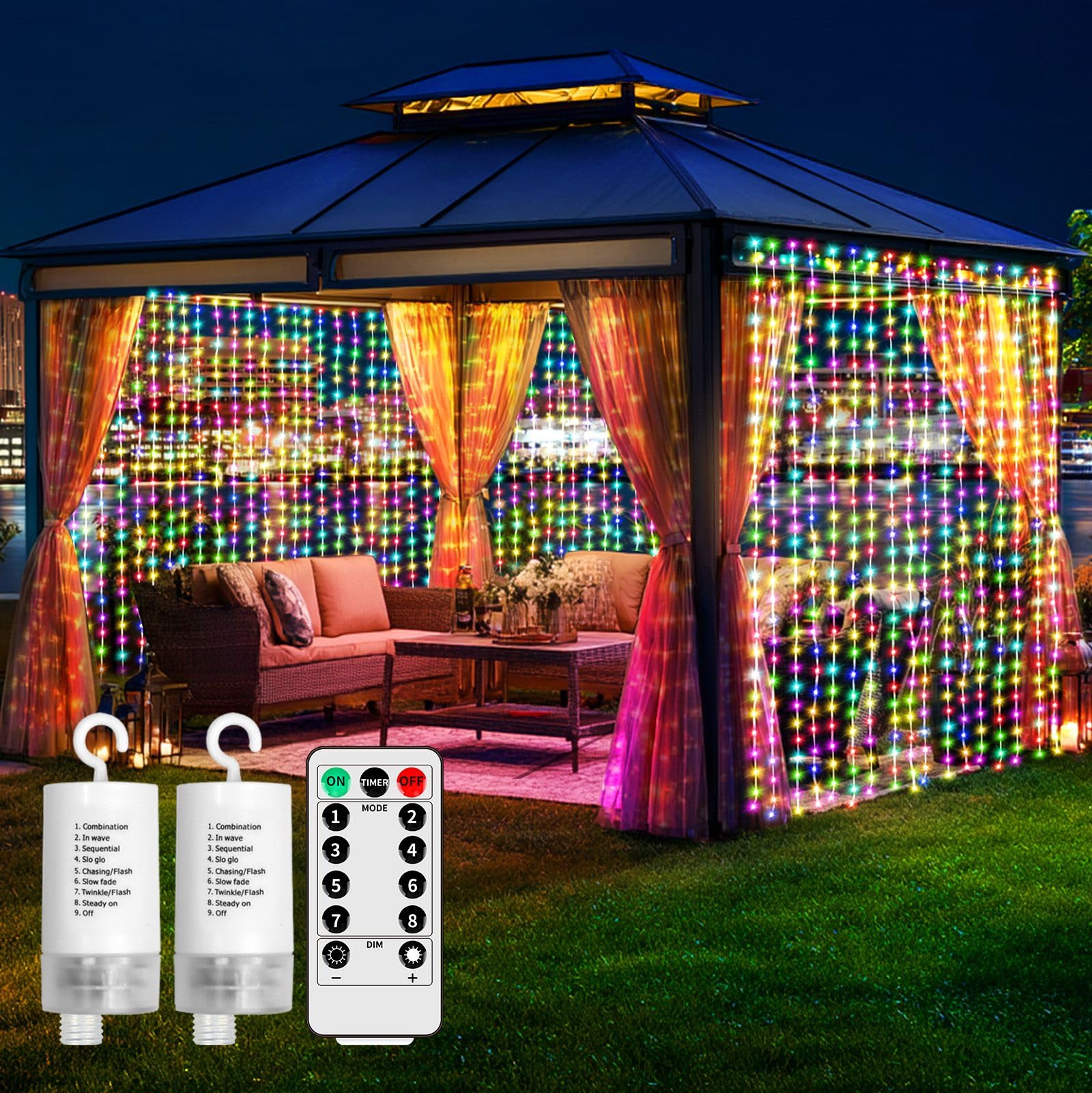 Luces de cortina a pilas (multicolor, 10 pies x 10 pies, paquete de 2)