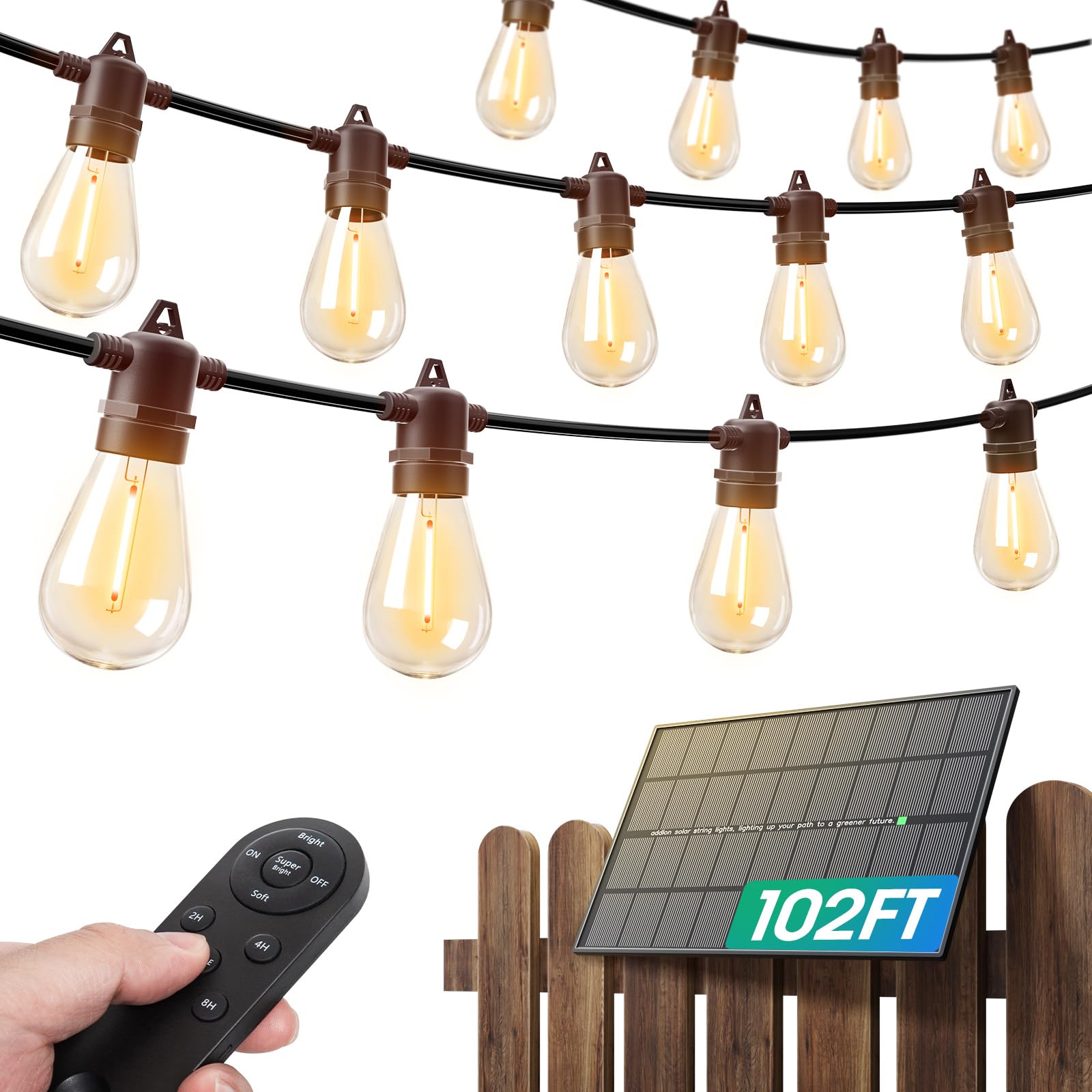 Ollny Luces solares de patio de 35 pies, control remoto impermeable, temporizadores regulables, 3 modos de luz al aire libre con 1