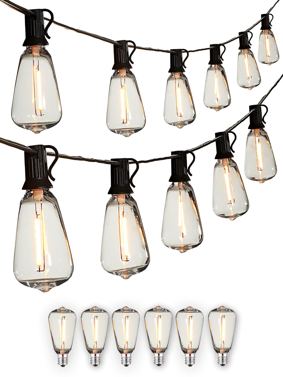 ZOTOYI Tira de luces para exteriores de 25 pies, impermeable, IP65, con 13 bombillas LED ST38 inastillables (1 repuesto), luces co