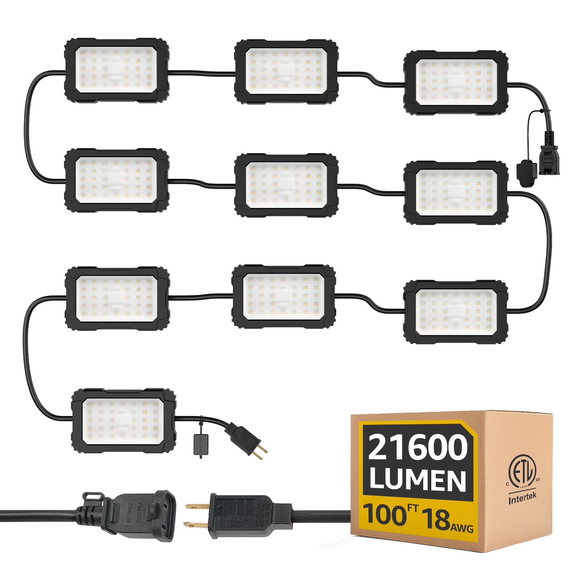 Cadena de luces LED de 180 W: lista ETL brillante industrial al aire libre iluminación temporal colgante IP65 impermeable 18AWG al