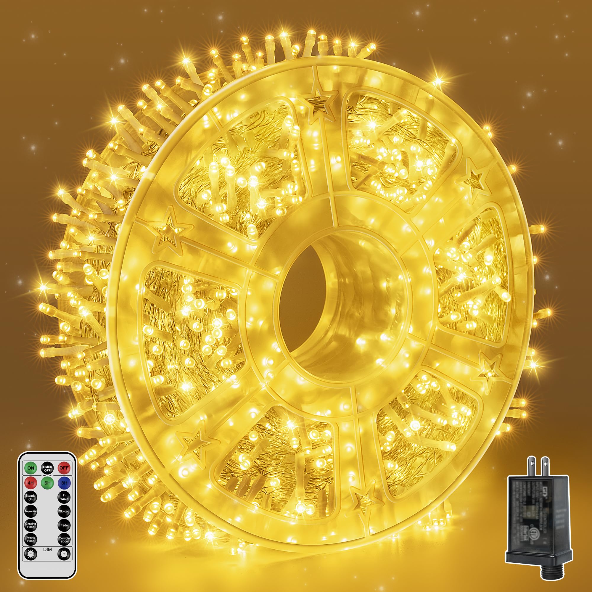 Tira de luces para exteriores, 600 LED, 98 pies, impermeable, con control remoto y temporizador, 8 modos de luces regulables para