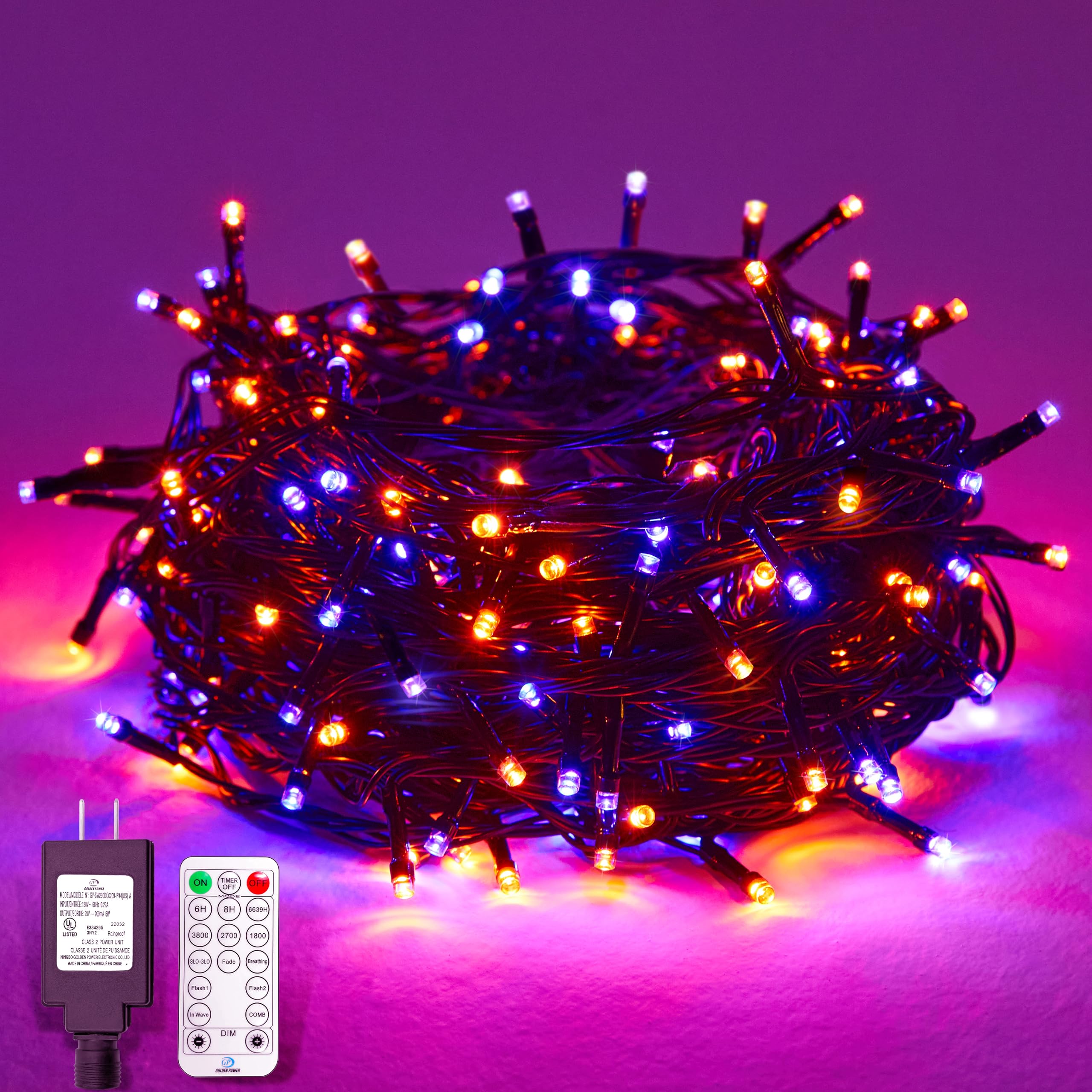 Halloween 300 LED String Lights,105FT String Lights with 8 Modes&Timer Function, Purple and Orange Halloween Lights Plug in for Pa