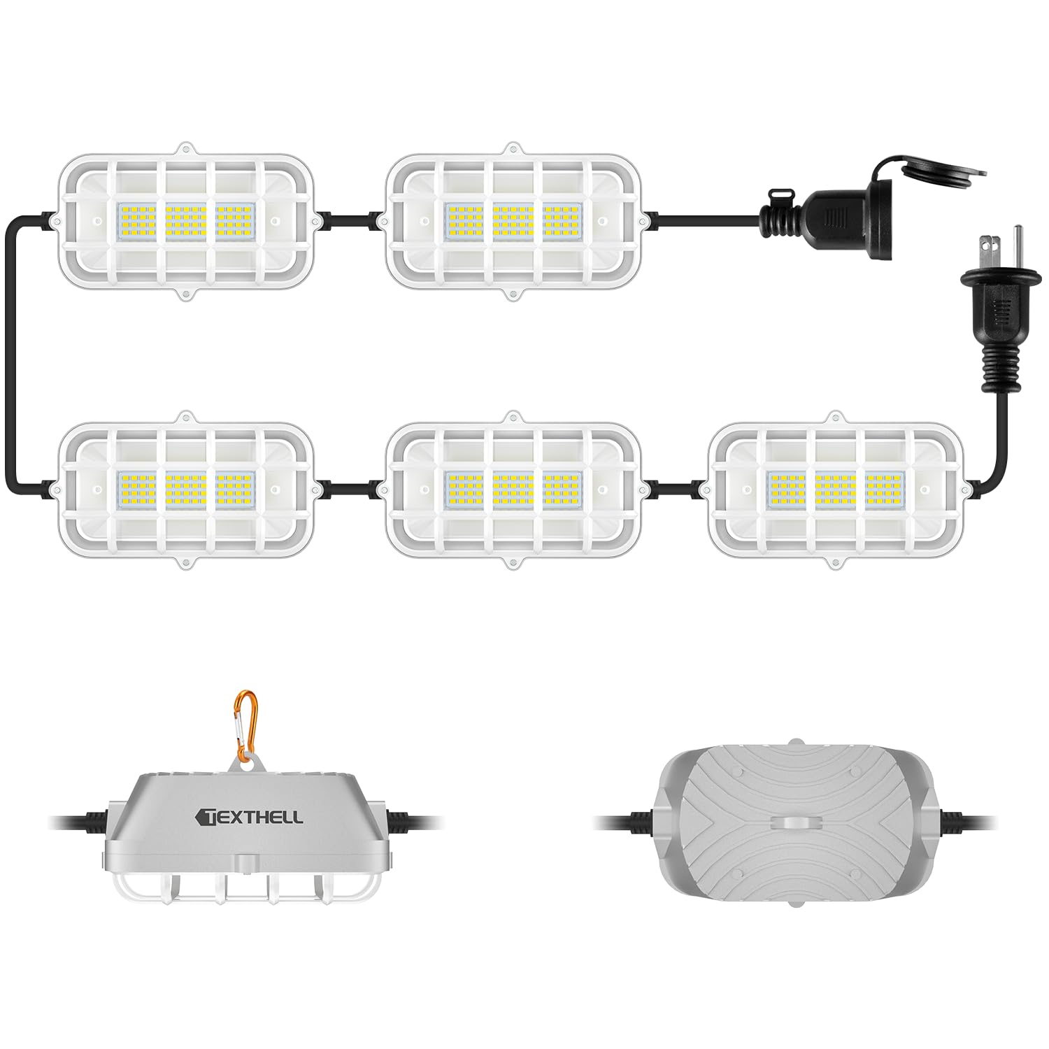 Tira de luces LED de construcción de 50 pies, 150 W, súper brillante, 15000 lúmenes, diseño conectable para el lugar de trabajo, a