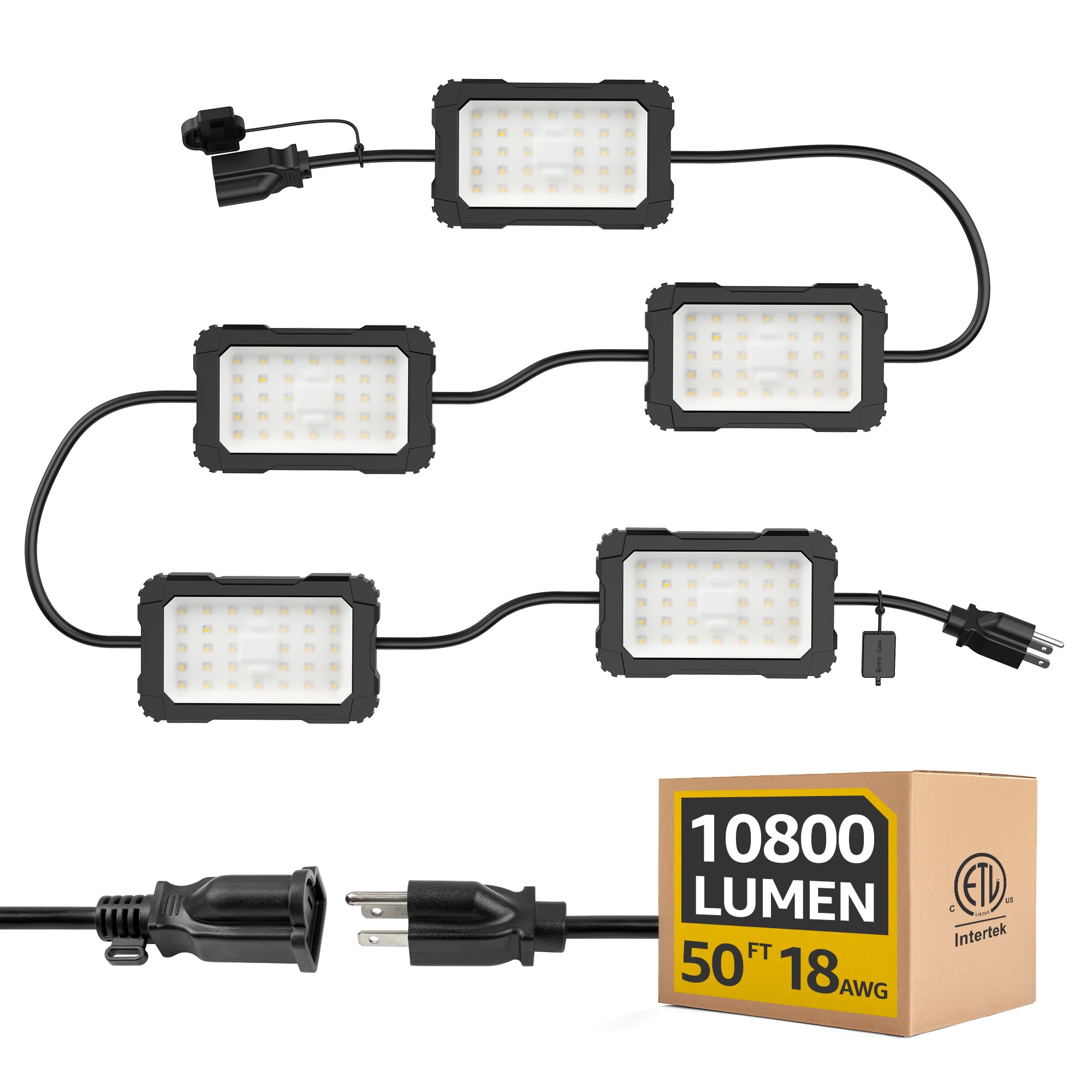 Cadena de luz de construcción de 100 pies, 130 W, 16000 lúmenes, 5000 K, luces de trabajo LED de grado industrial, iluminación tem