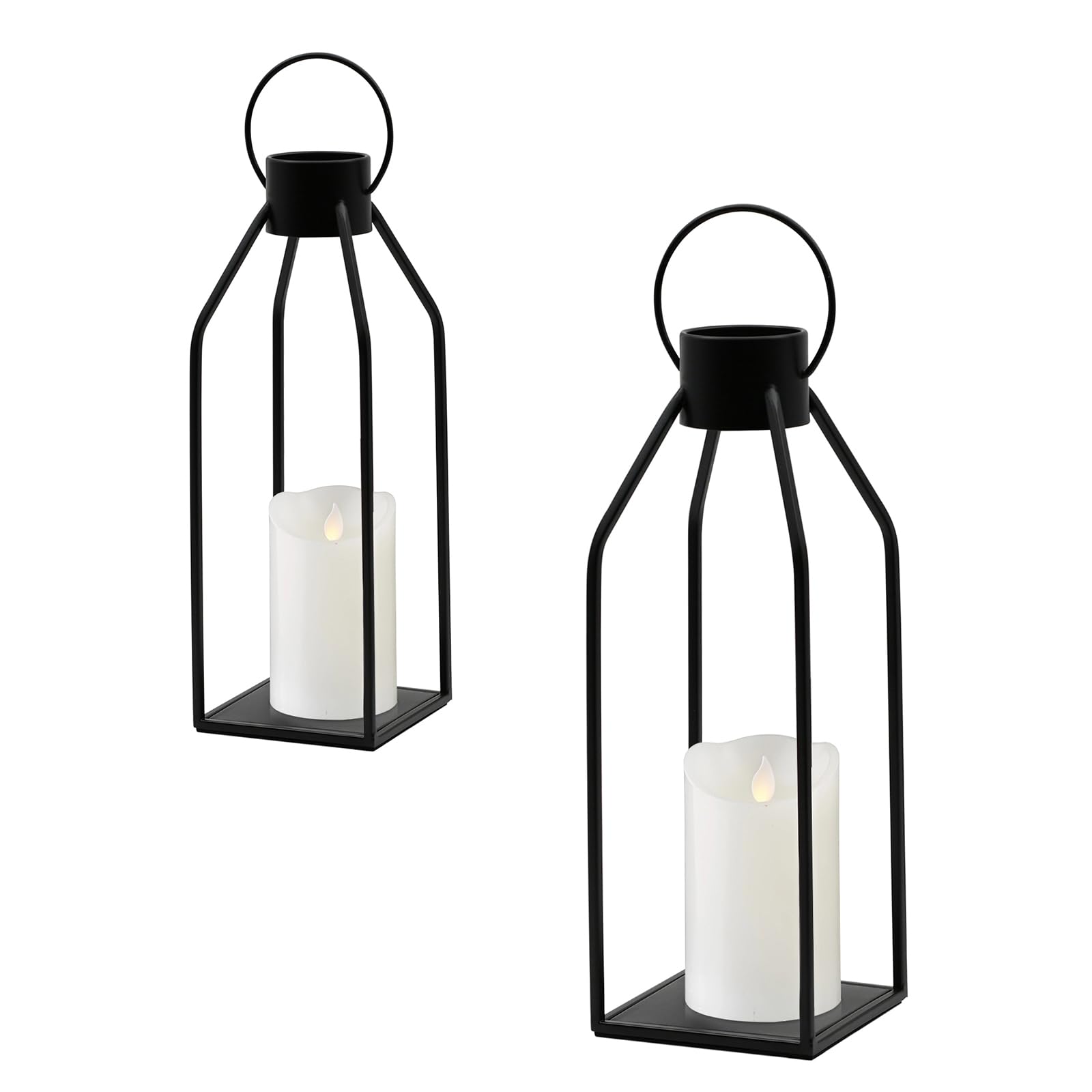 Black Metal Candle Lanterns Living Room Decor, 2 Pack Black Metal Lanterns Holder, Modern Farmhouse Decor, Indoor/Outdoor Hanging