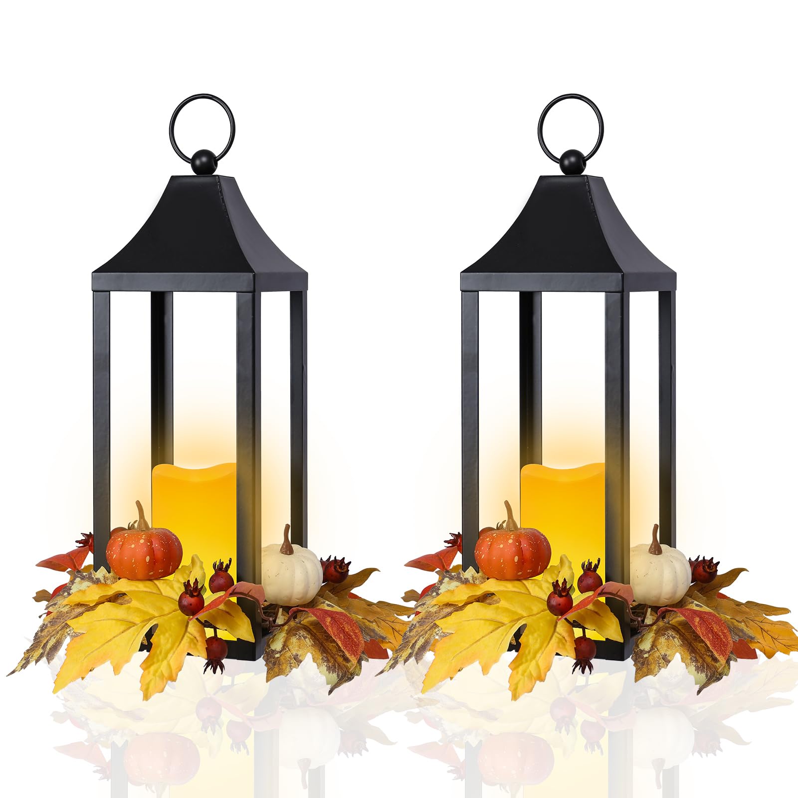 Paquete de 2 faroles decorativos de otoño con vela LED, farol colgante de hoja de arce de calabaza de cosecha de 15.7 pulgadas par