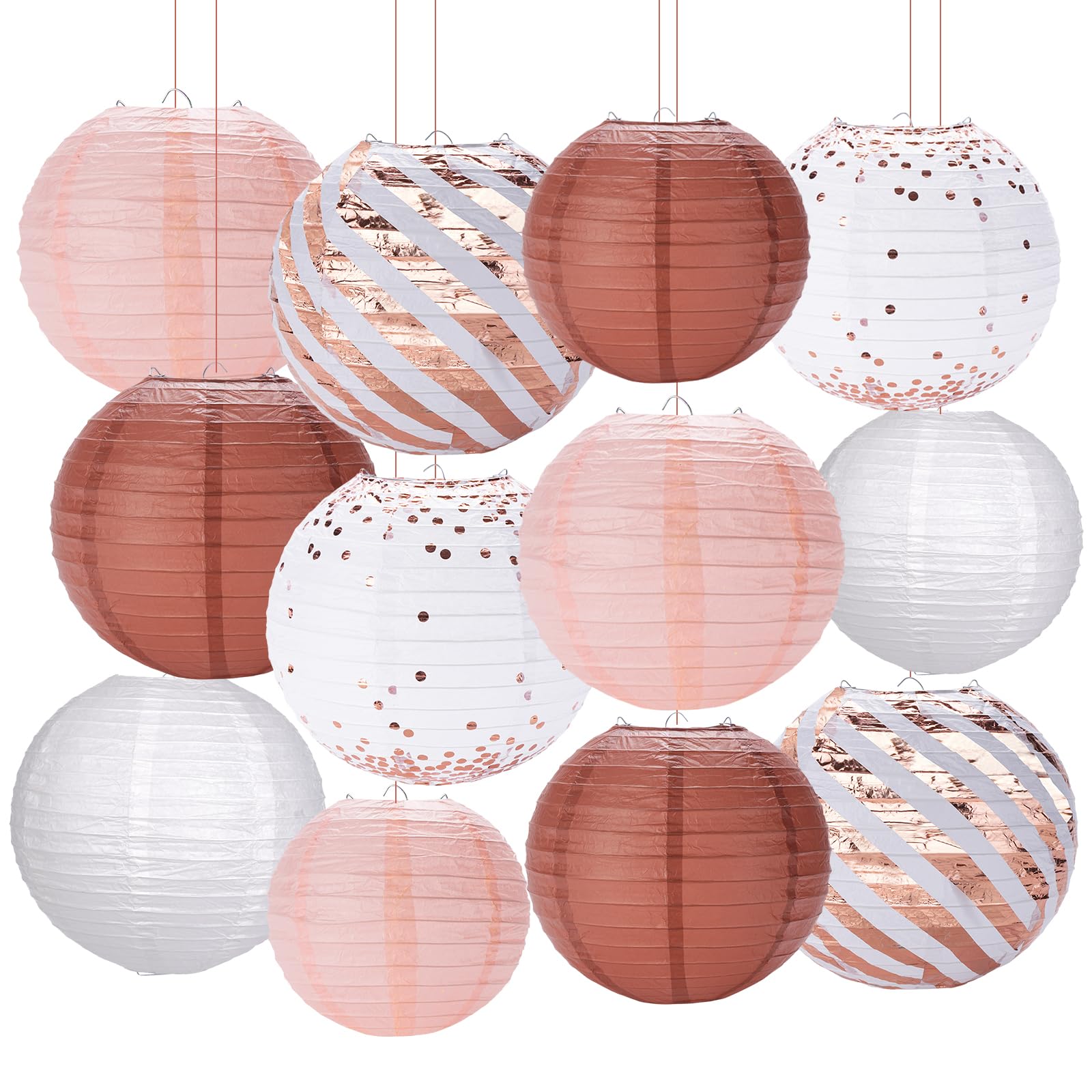 Faroles de papel para decoración de fiesta, color oro rosa, blanco, faroles de papel colgantes para despedidas de soltera, bodas,