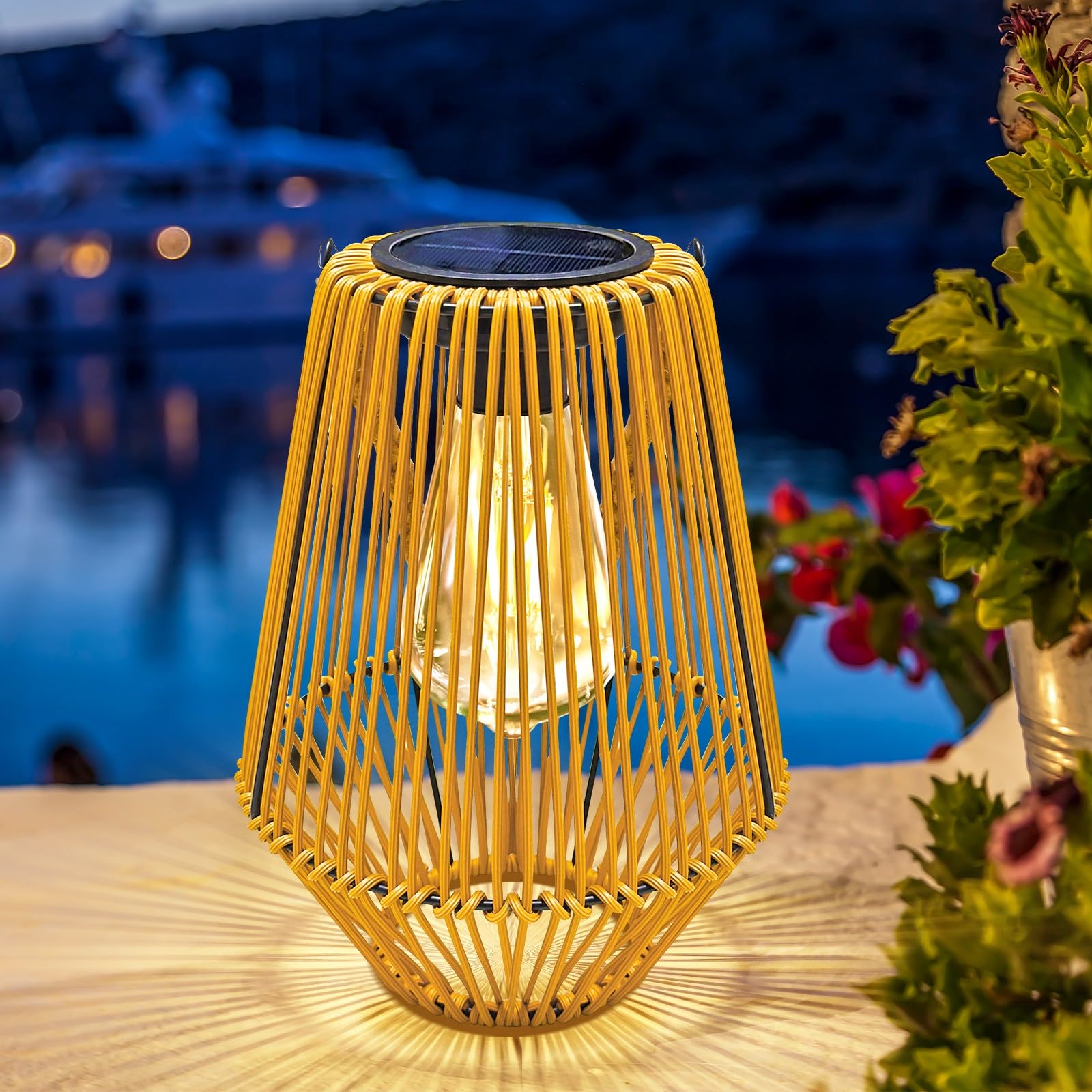 Farol solar, faroles solares para exteriores, impermeables, para colgar en el exterior, farol tejido bohemio para decoración de ja