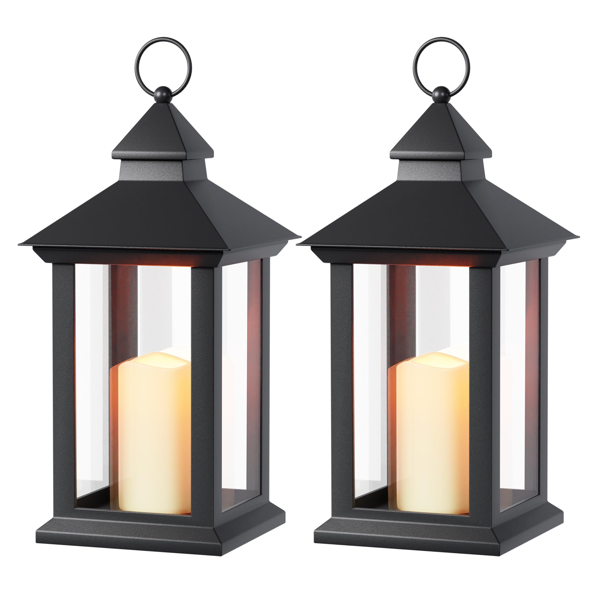 Lanterns – Faroles decorativos para interiores y exteriores, paquete de 2 faroles LED negros impermeables de 13.3 pulgadas para pa