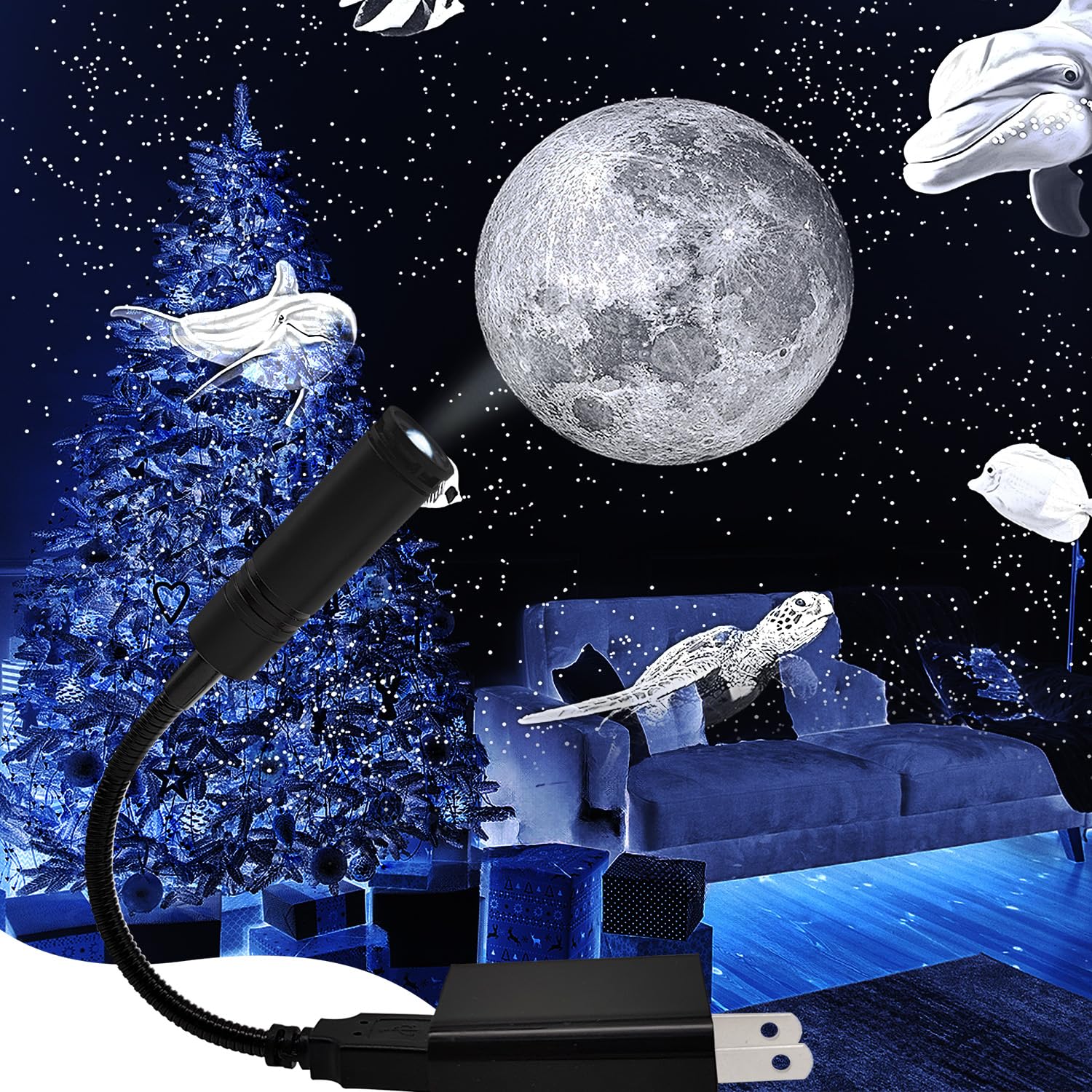 Proyector HD de enfoque ajustable con imagen clara y nítida de luna llena, ángulo de 360 grados Bendable Dormitorio Decoración de