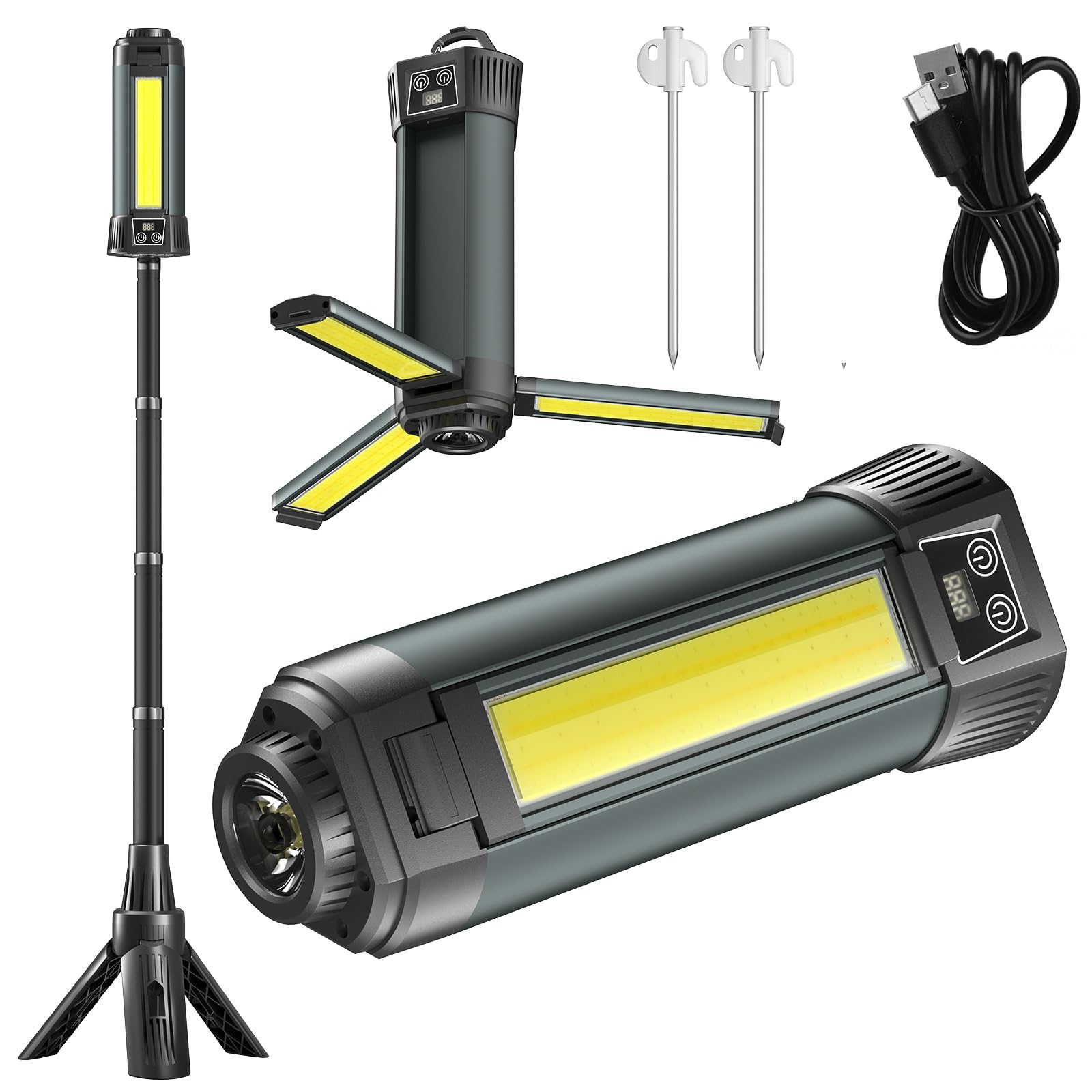 LE – Linterna LED de camping recargable, 600 lúmenes, linterna desmontable, artículos esenciales de campamento, linterna perfecta