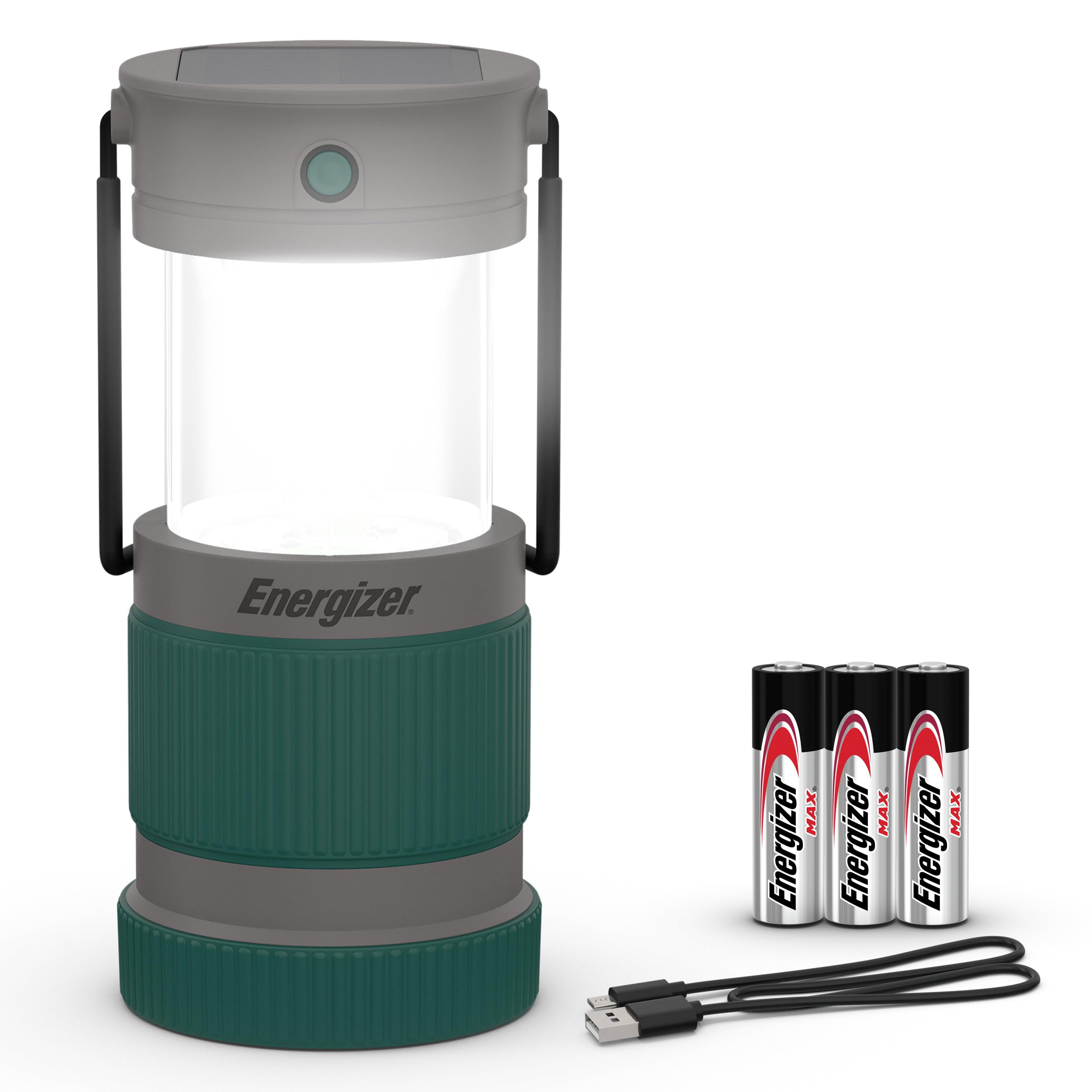 Energizer Linterna de camping híbrida S-500, solar, recargable o alimentada por pilas AA, linterna LED brillante resistente al agu