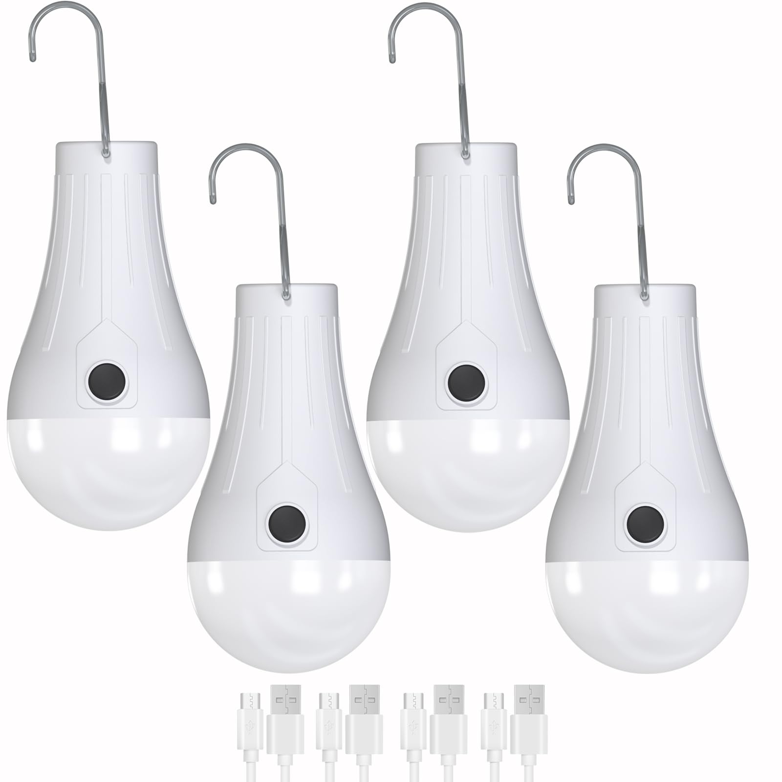 Bombillas recargables por USB, luces LED impermeables para tienda de campaña, paquete de 4 bombillas recargables con 4 modos de lu