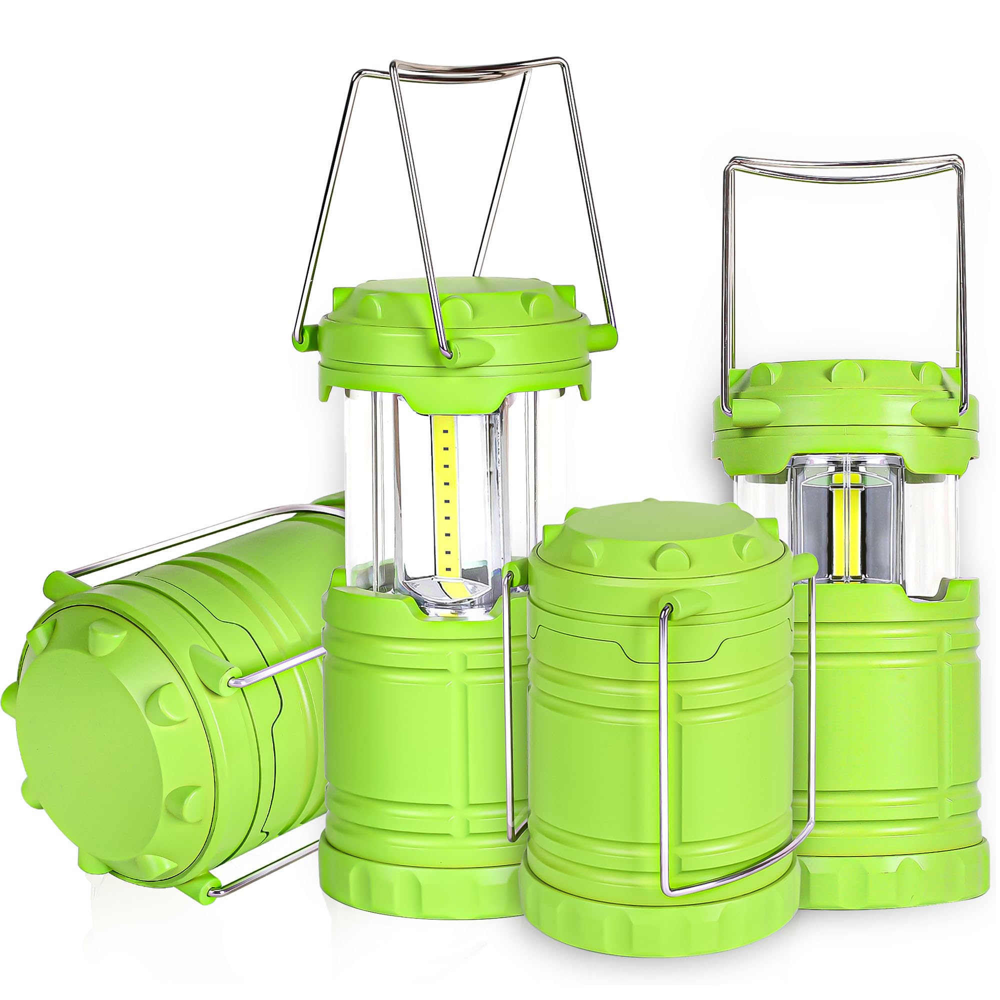 Paquete de 4 linternas LED verdes para campamento, luces portátiles para acampar, lámparas con mango al aire libre, luces de emerg