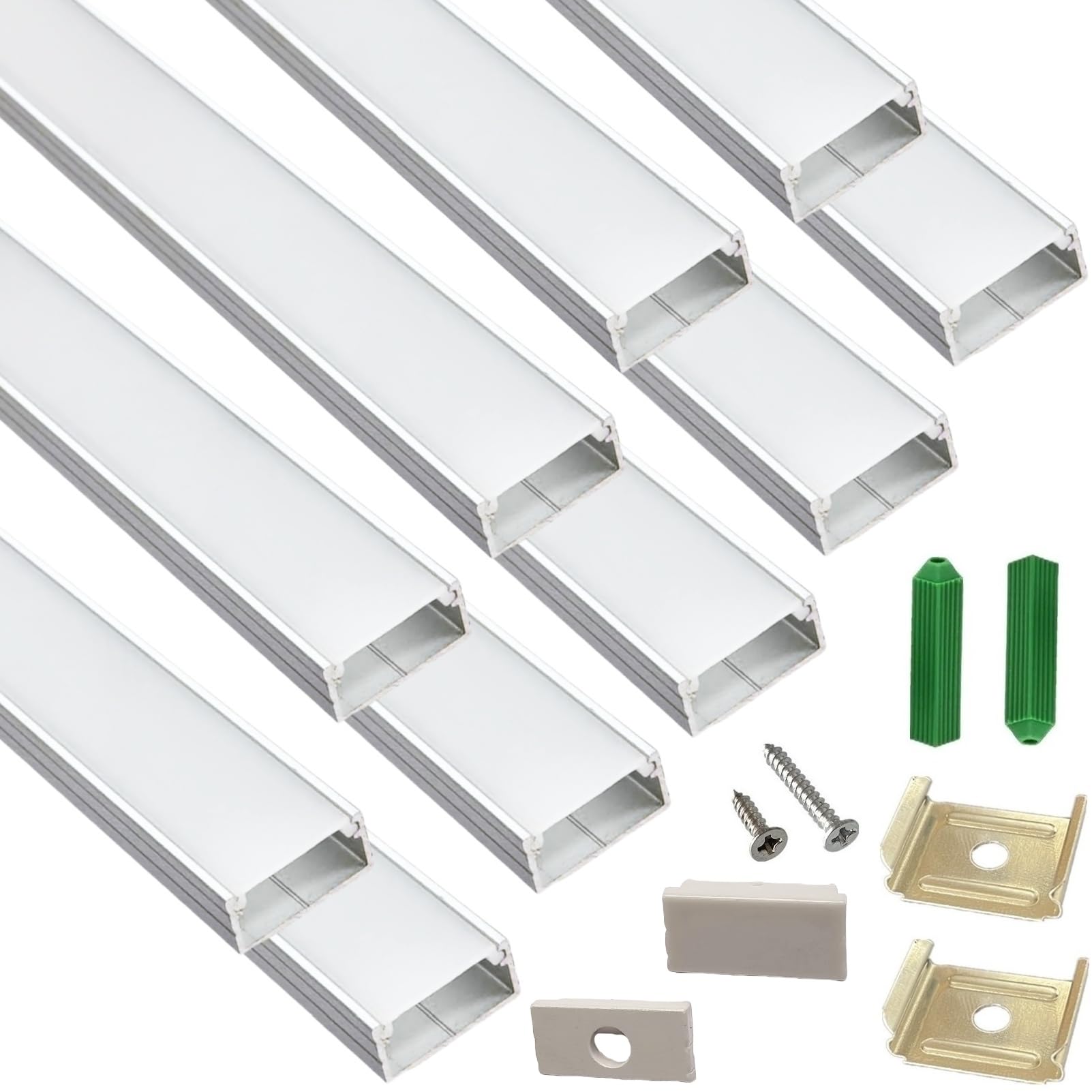 Difusor de canal en U de tira LED, paquete de 6 unidades de 1 pie, 0.669 x 0.295 in montado en superficie de aluminio con resisten