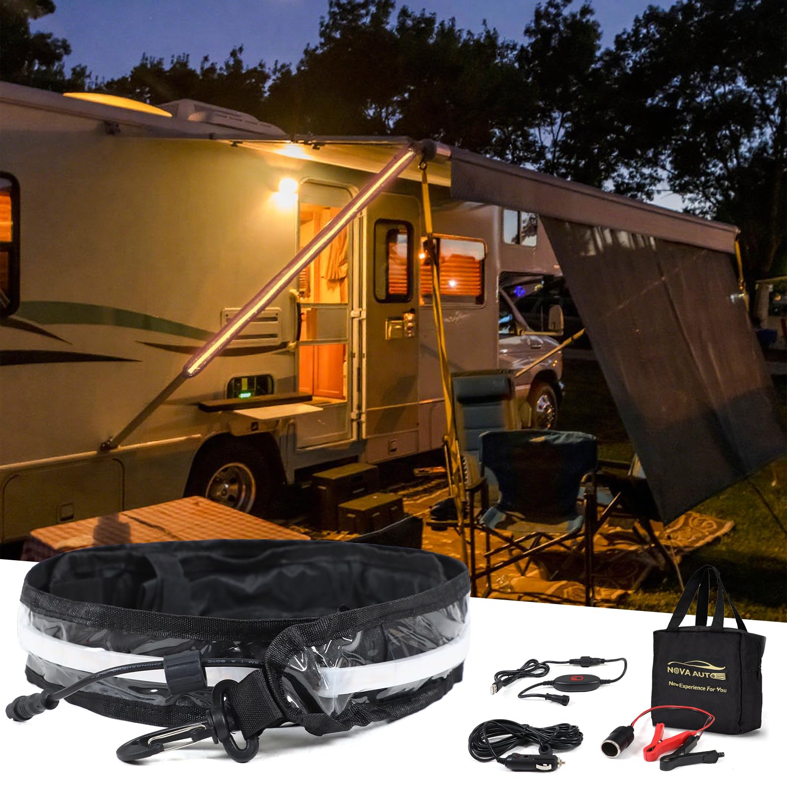 Tira de luz LED de 12 V para toldo RV con 2835 chips LED, luces de gabinete, impermeable, IP65, tira flexible para acampar al aire