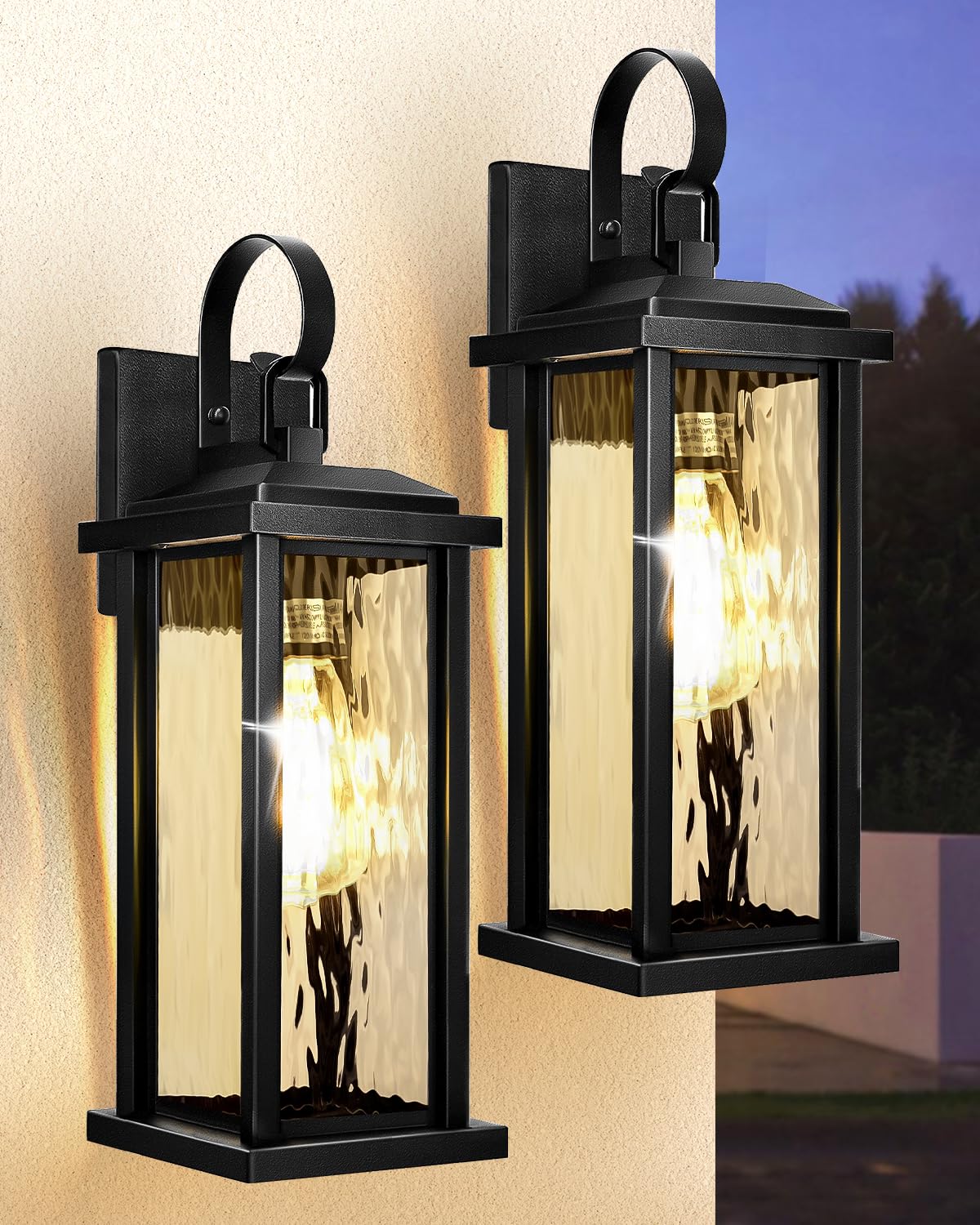 YoonLIT – Lámpara de porche para exteriores del anochecer al amanecer, grandes faroles de pared impermeables para exteriores, acce
