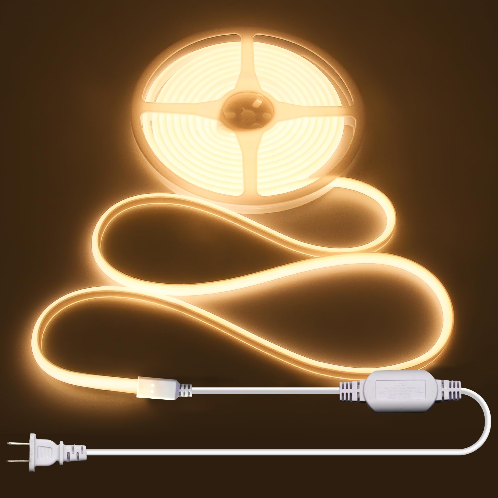 ALITOVE COB – Tira de luz LED para exteriores, impermeable, IP67, blanco cálido, 3000 K, 16.4 pies, CA 110 V, 120 V, luces LED de
