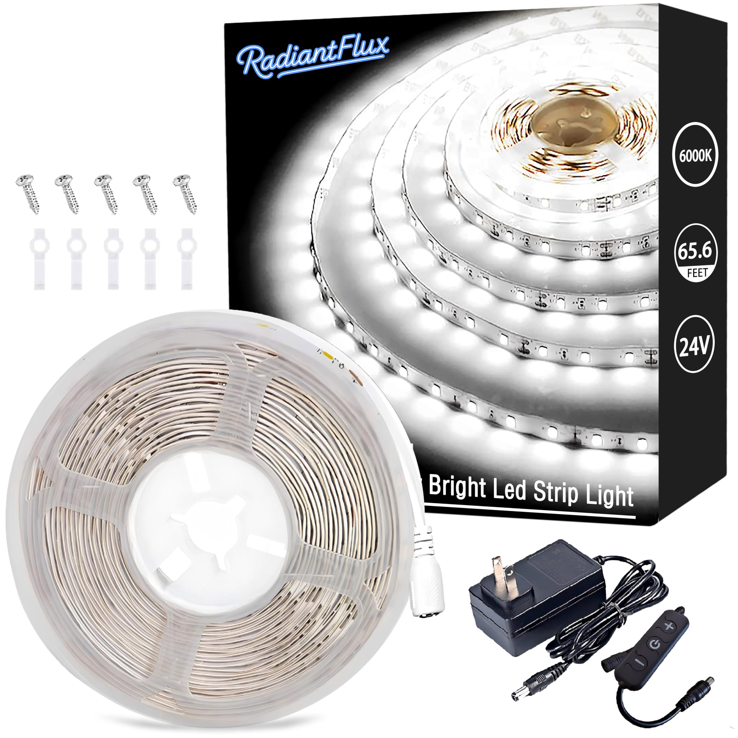MIWISE COB – Tira de luces LED de 65.6 pies/65.6 ft, certificación UL, CRI 90+ regulable, 6000 K, luz blanca diurna, súper brillan