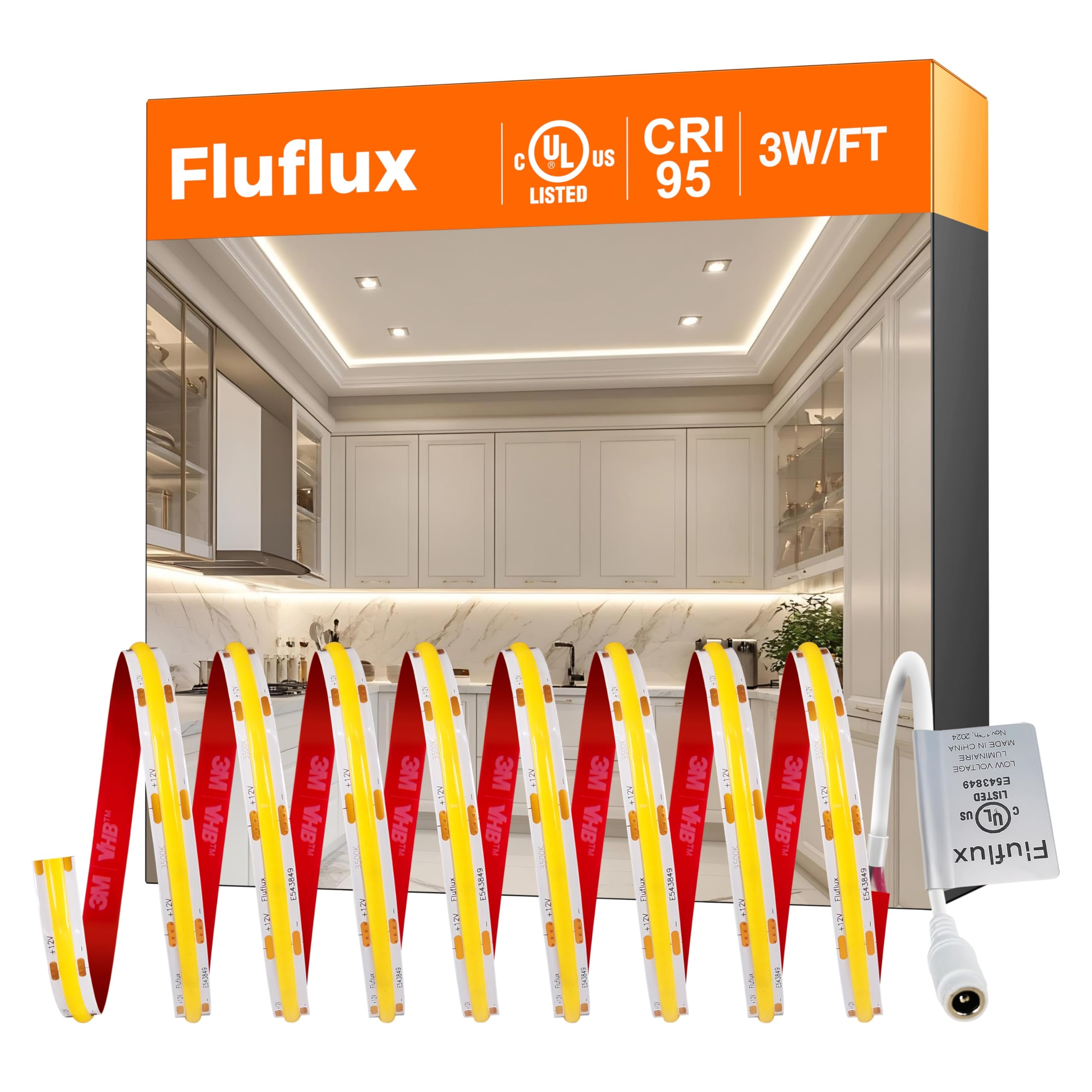 COB – Tira de luces LED blancas de 3500 K, cinta de luz de 12 V CC de alta calidad con fuerte respaldo VHB 3M, CRI 95, certificaci