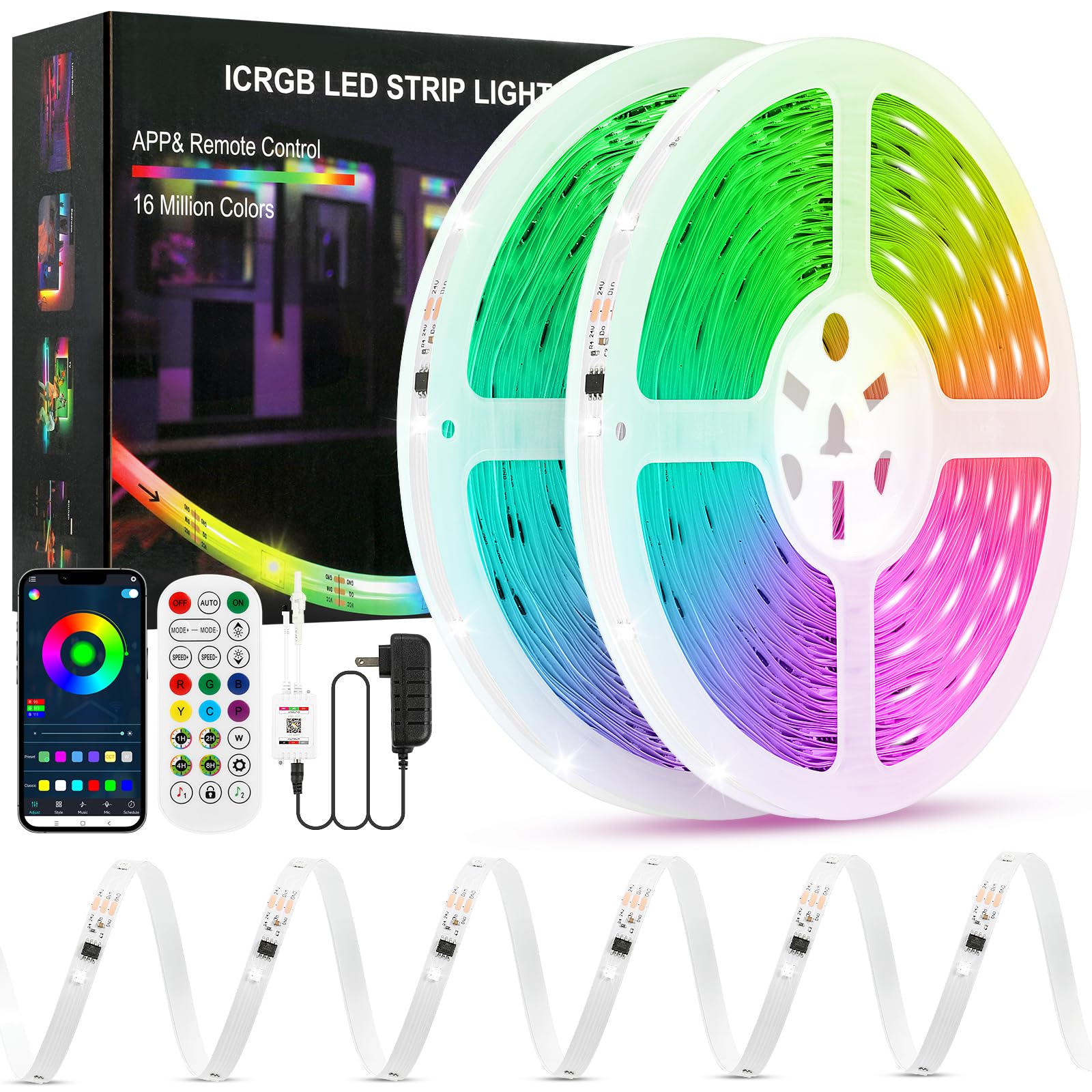 Luces LED para dormitorio, IC+RGB de 65.6 pies, control remoto de 24 teclas con control de aplicación, sincronización de música qu