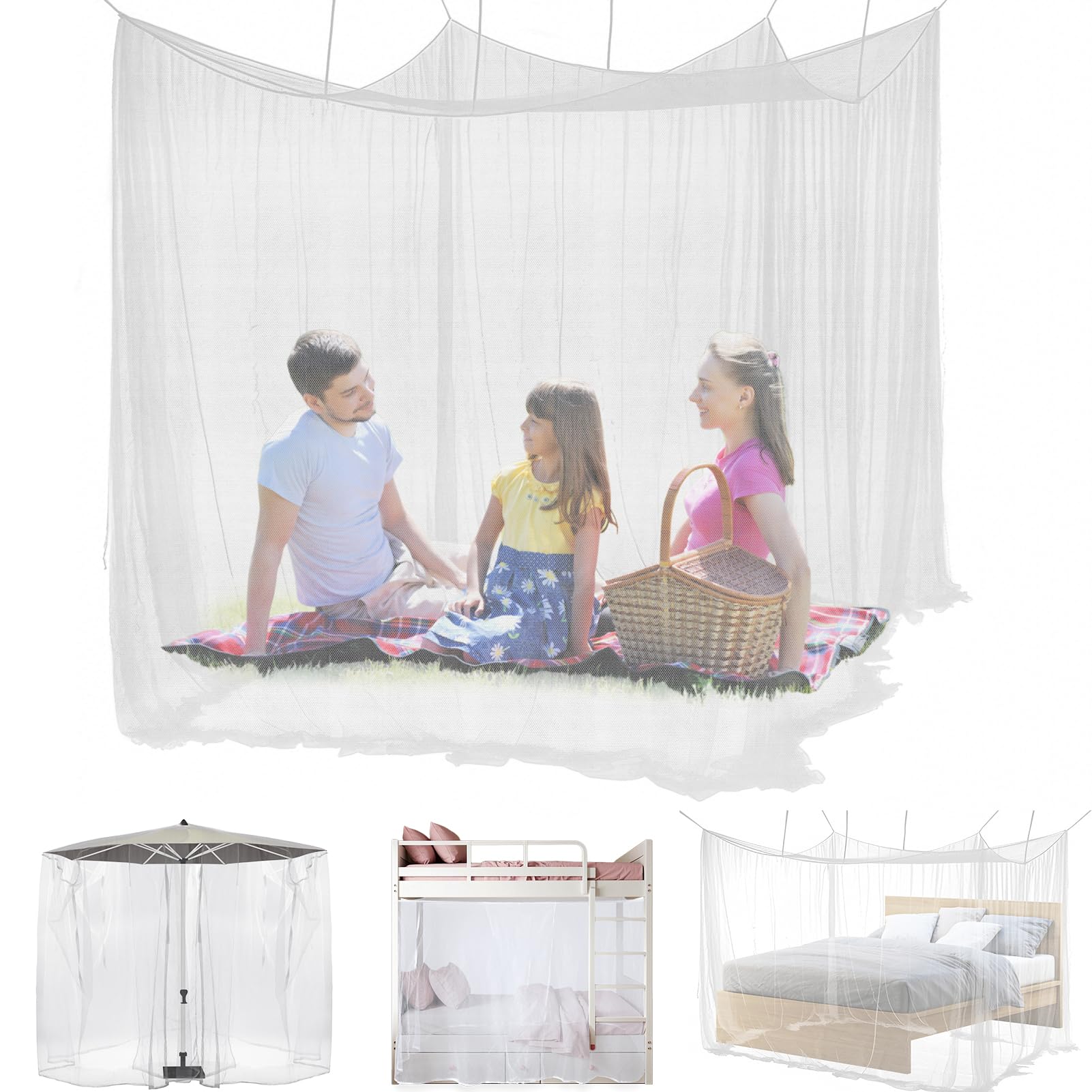 Mosquitera para patio, mosquitera extragrande para cama, camping, hamaca, porche, jardín, al aire libre, diseño de 2 aberturas con
