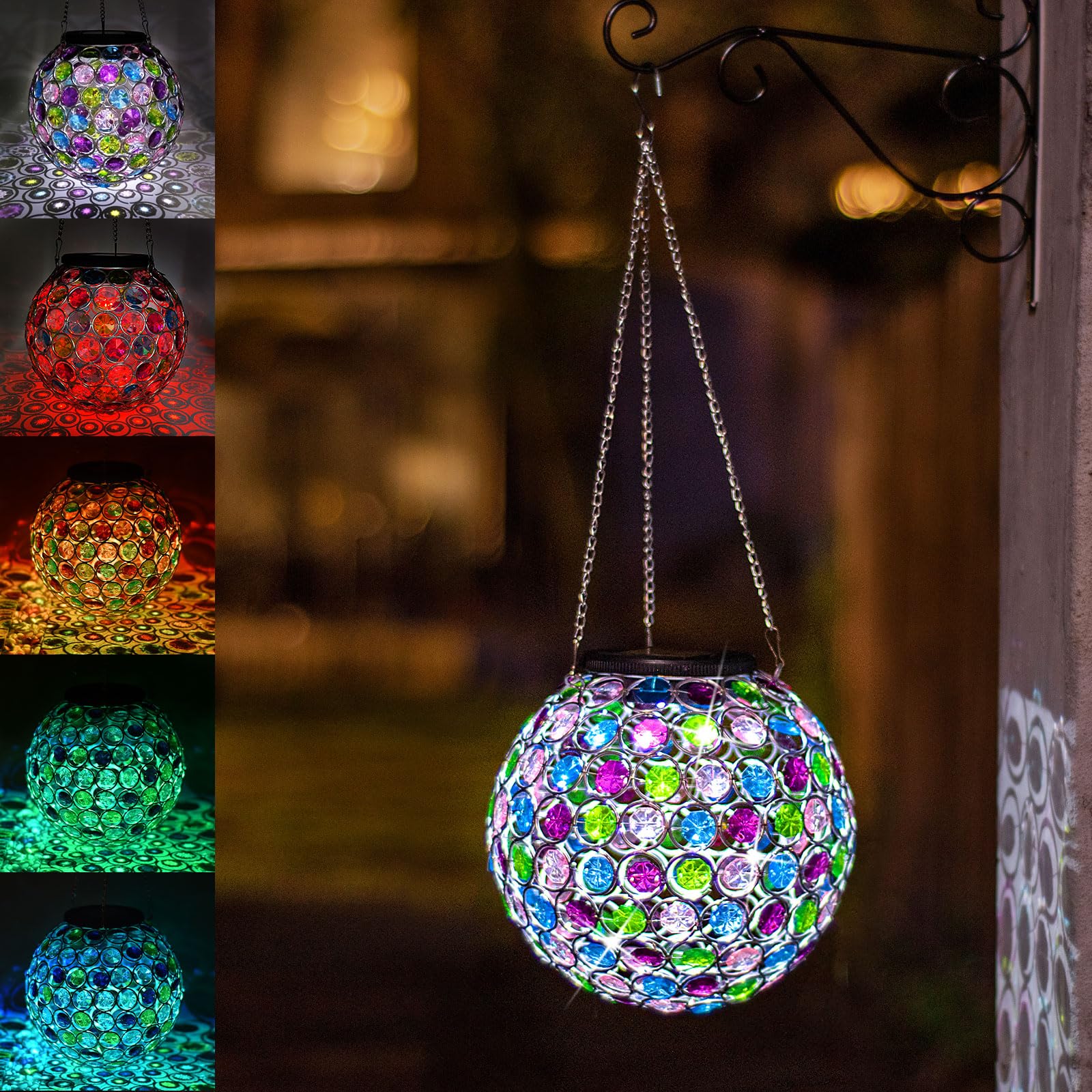 Farol solar colgante de Navidad al aire libre, doble LED que cambia de color y lámpara de globo de cristal blanco frío, luz colgan