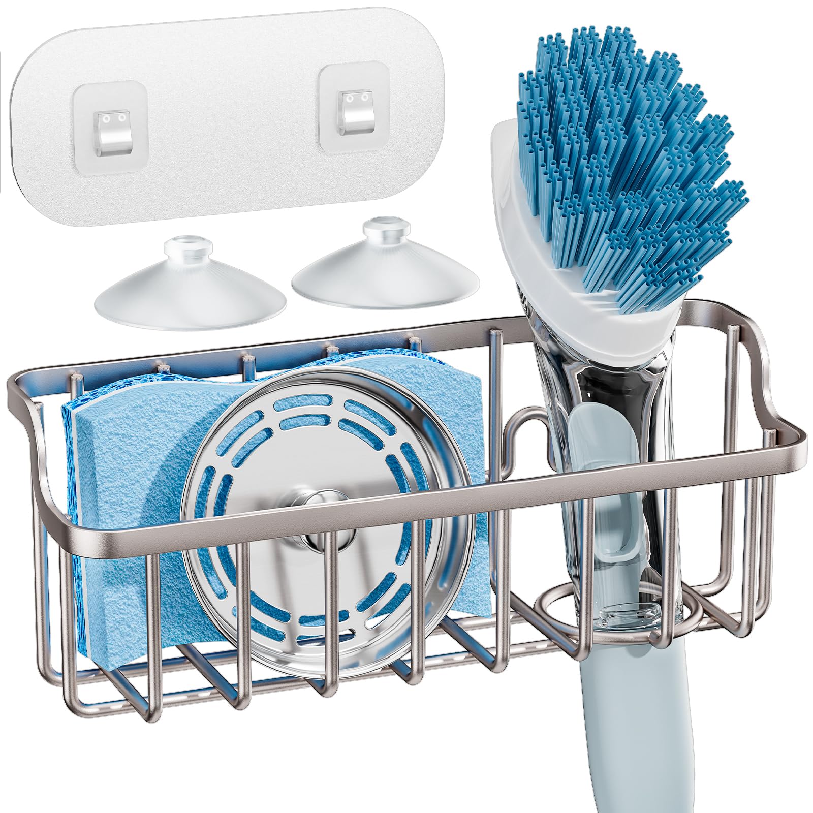 Paquete de 2 soportes de esponja para fregadero de cocina, adhesivo fuerte SUS304, soporte de esponja de acero inoxidable para fre