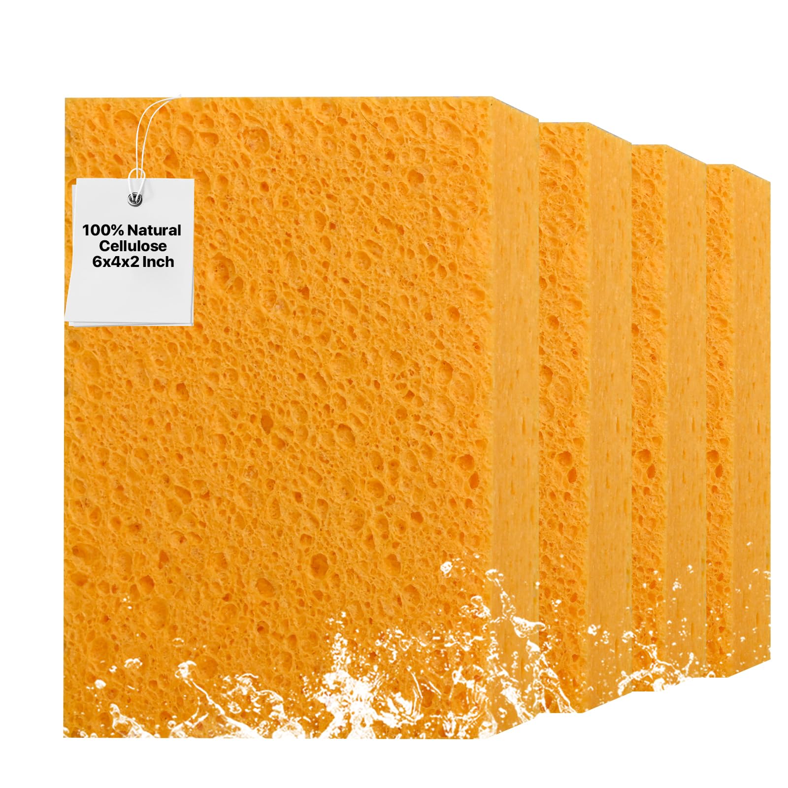 4 esponjas grandes de celulosa natural de 6 x 4 x 2 pulgadas, súper absorbentes y biodegradables, perfectas para limpieza del hoga