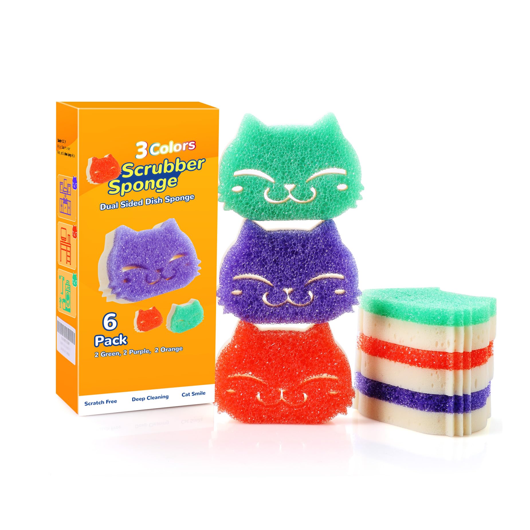 Eyliden 6 Pack Scrub Sponge – Dual-Sided, Smart-Temp Firmness, Dish Scrubber, Non-Scratch, Multi-Surface Safe Cleaning Sponges – K