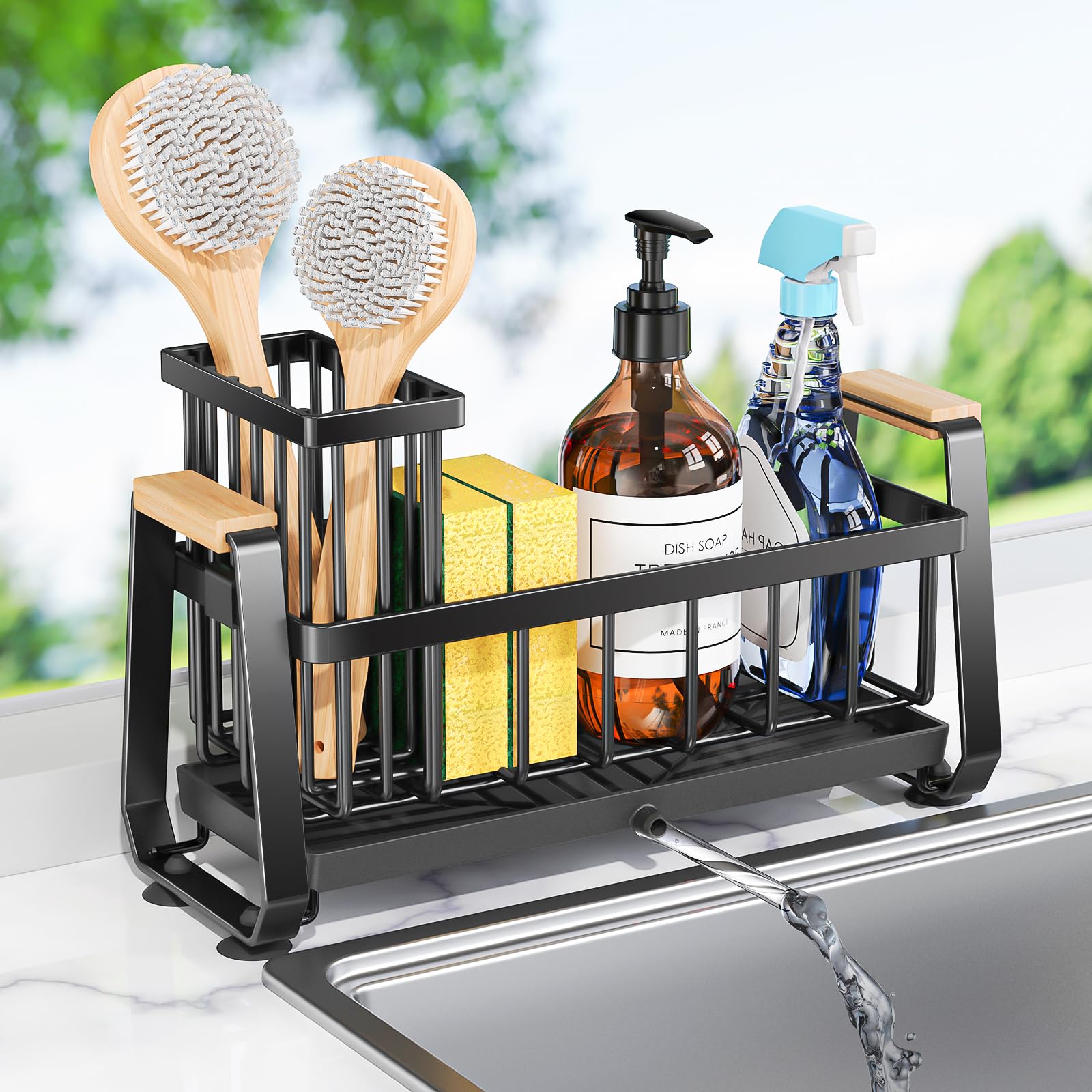 Organizador de fregadero, soporte de esponja de cocina para fregadero con bandeja de drenaje rápido y ventosas antideslizantes, or